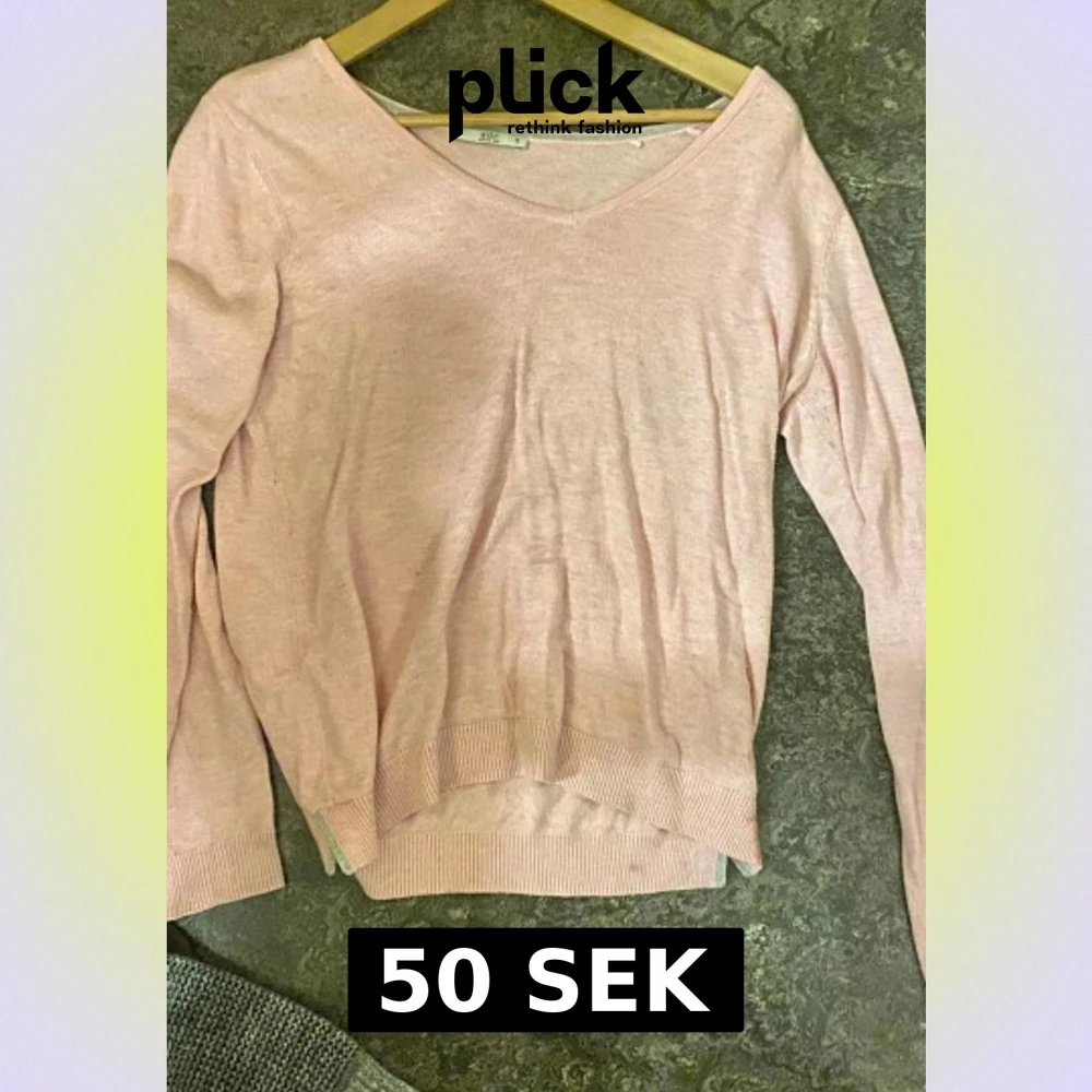 Snygg ljusrosa stickad tröja från edc i storlek M. Tröjan har v-ringad hals och långa ärmar, med ribbade muddar vid ärmslut och nederkant. Perfekt för dig som gillar en enkel och clean look med mjukt material.