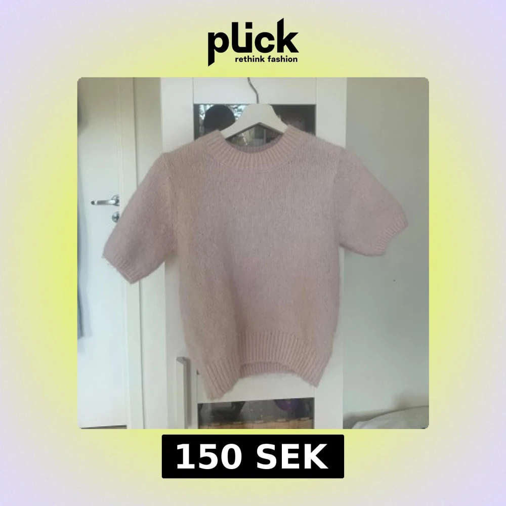 Mjuk och fin ljusrosa stickad tröja från Gina Tricot med korta ärmar. Perfekt för lager-på-lager eller sommarens svalare dagar. Skulle säga att tröjan mer är xs💕