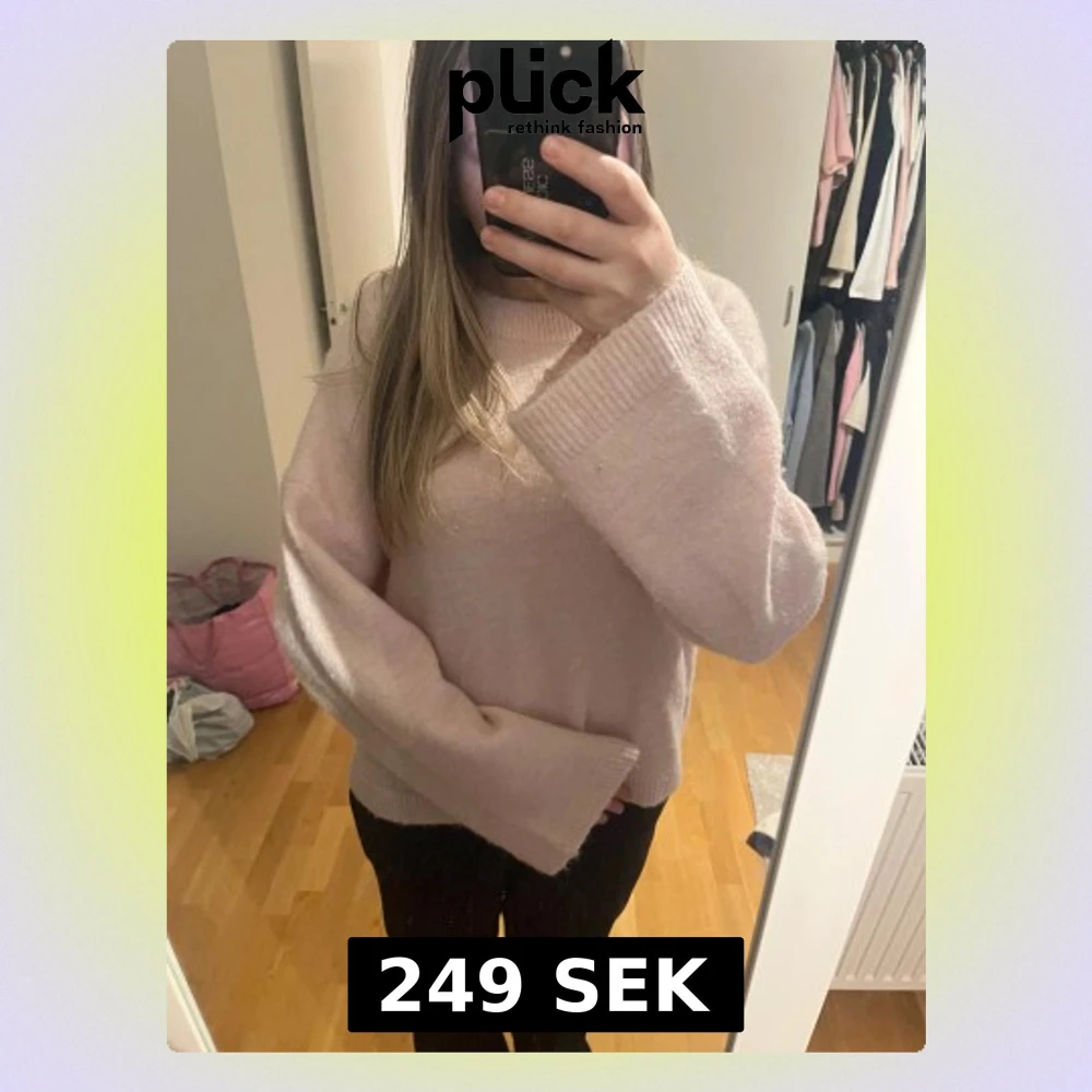Supermysig ljusrosa stickad tröja från Gina Tricot i storlek M. Tröjan har breda, långa ärmar och ribbade muddar vid hals och ärmslut. Perfekt för att hålla sig varm under kyliga dagar och har en loose passform som ger en chill vibe.