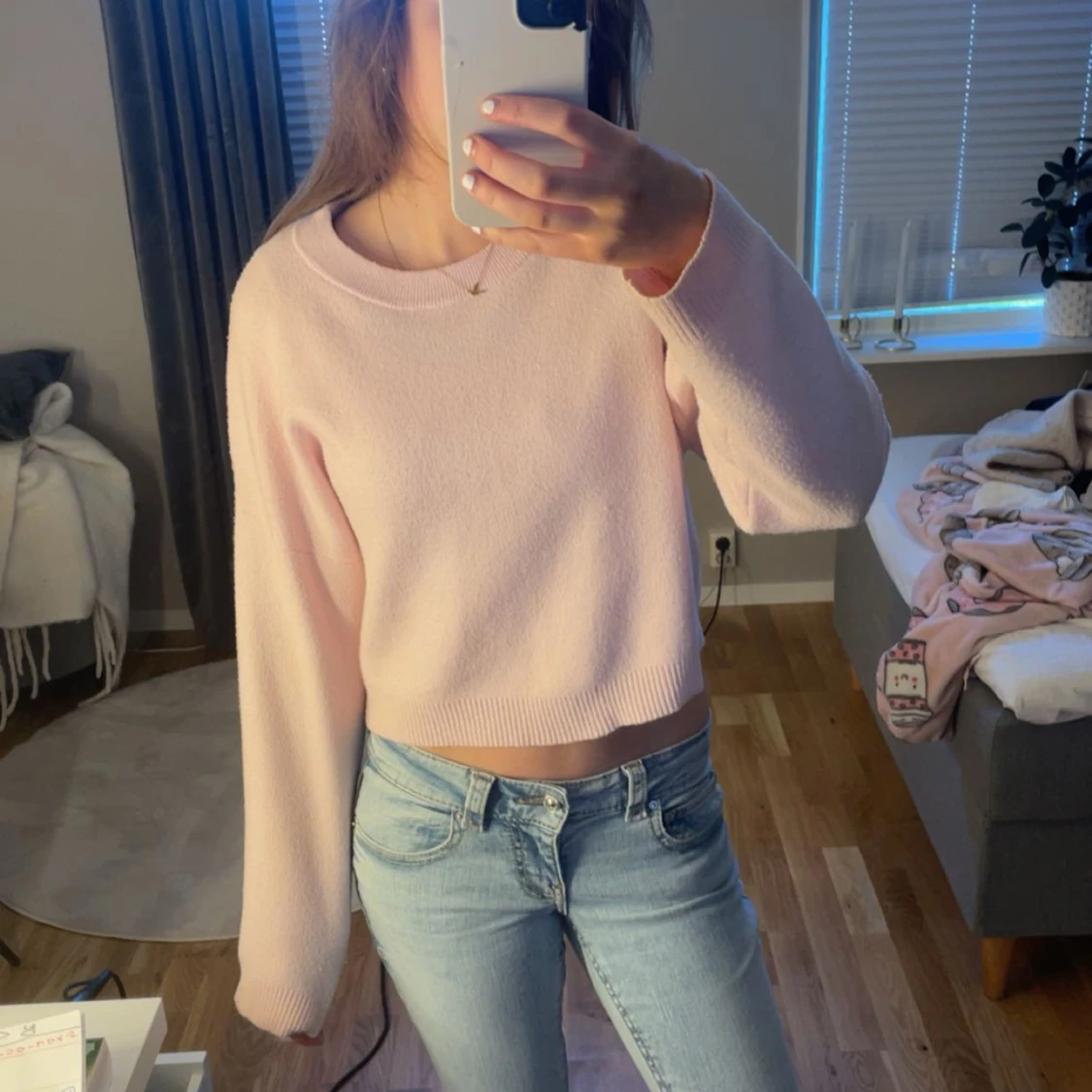 Säljer denna JÄTTEFINA ljusrosa stickadde tröjan. Perfekt att matcha med jeans eller kjol. Supermjuk och skön att ha på sig!