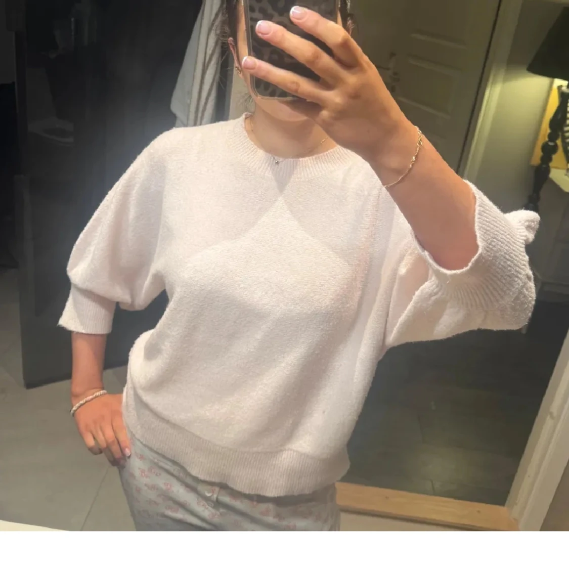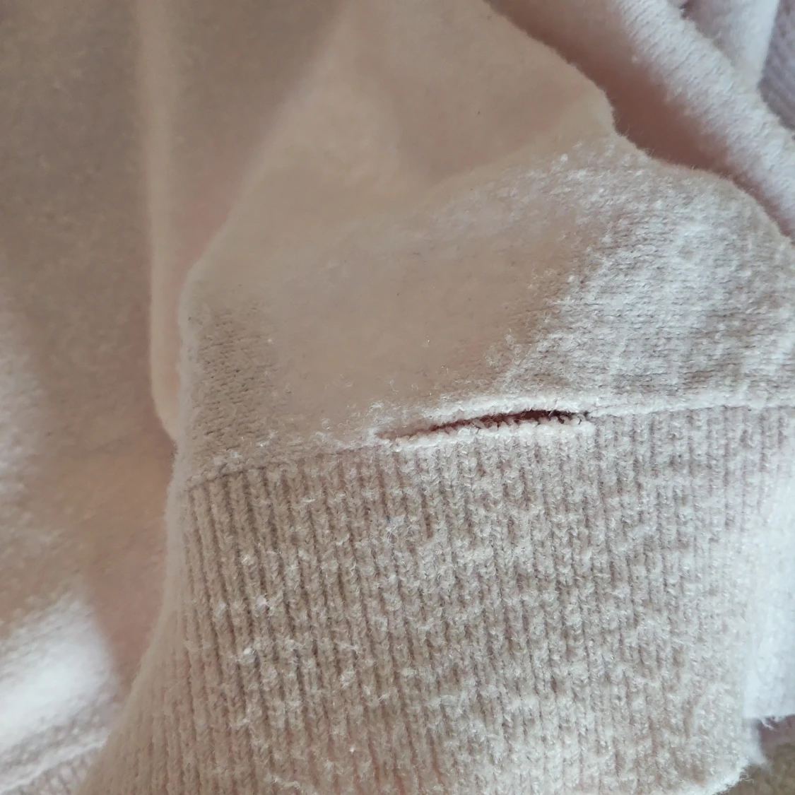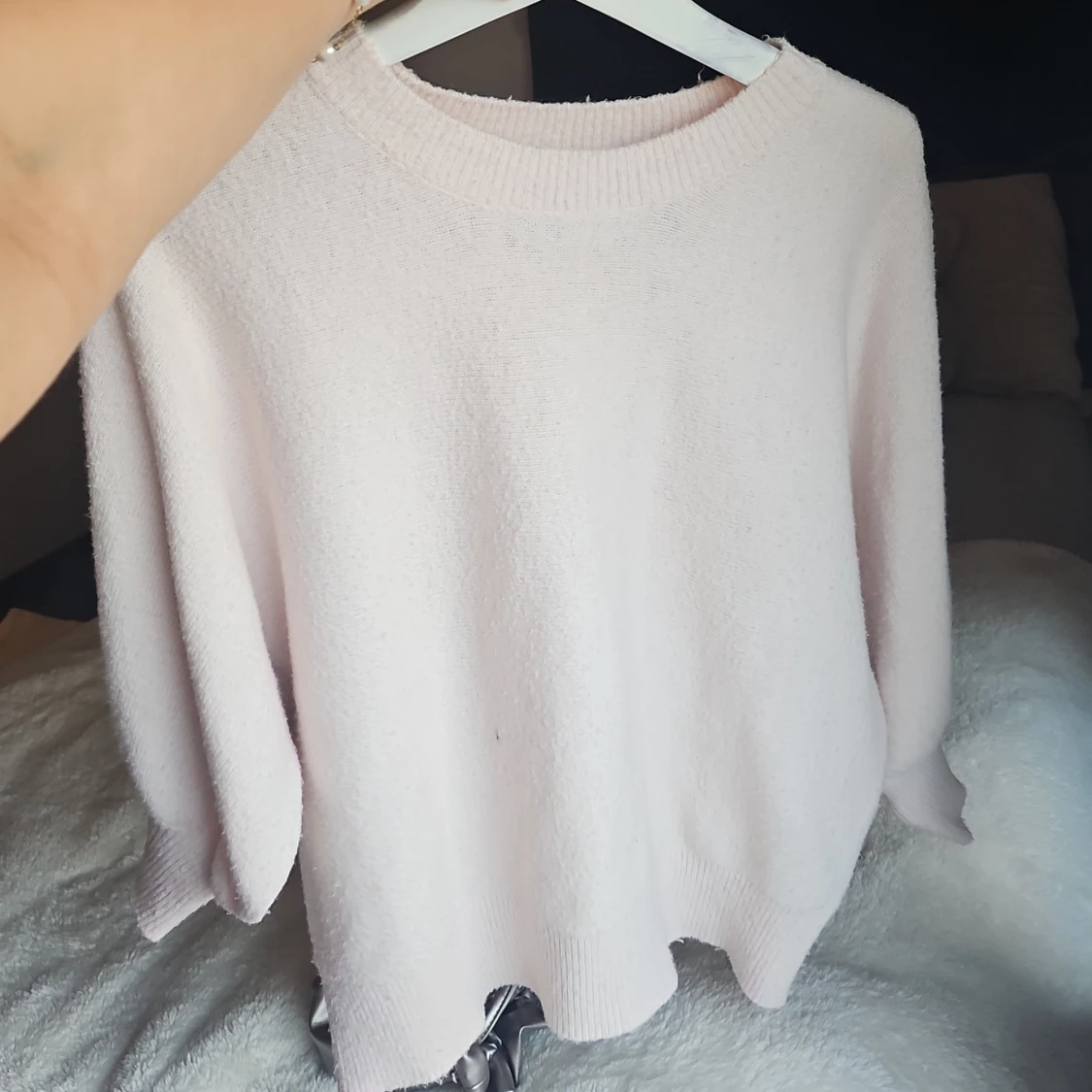 Mysig ljusrosa stickad tröja från linden strl M. En liten svart fläckar finns o ett hål på baksidan.