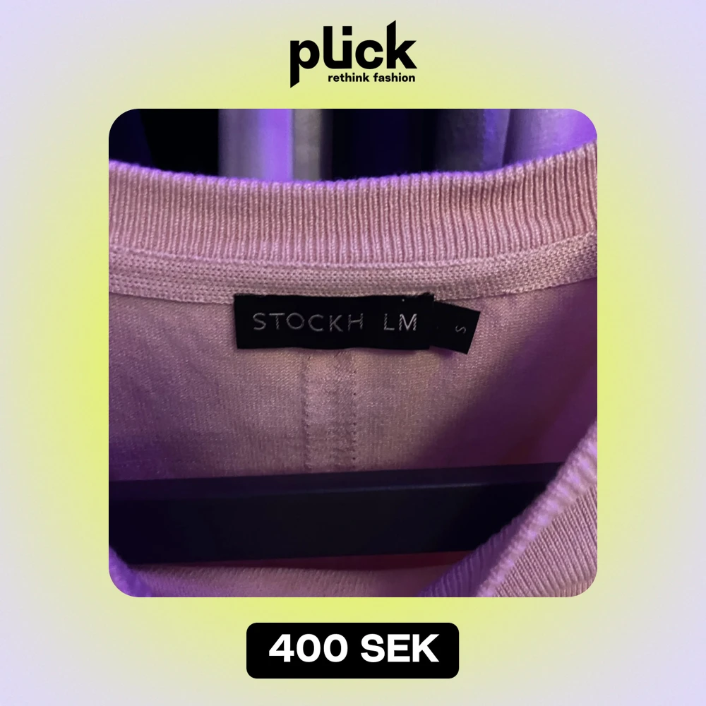 Säljer en söt ljusrosa tröja från Stockh LM i storlek S. Tröjan har korta puffärmar och en rund halsringning. Perfekt för vår och sommar! 💖