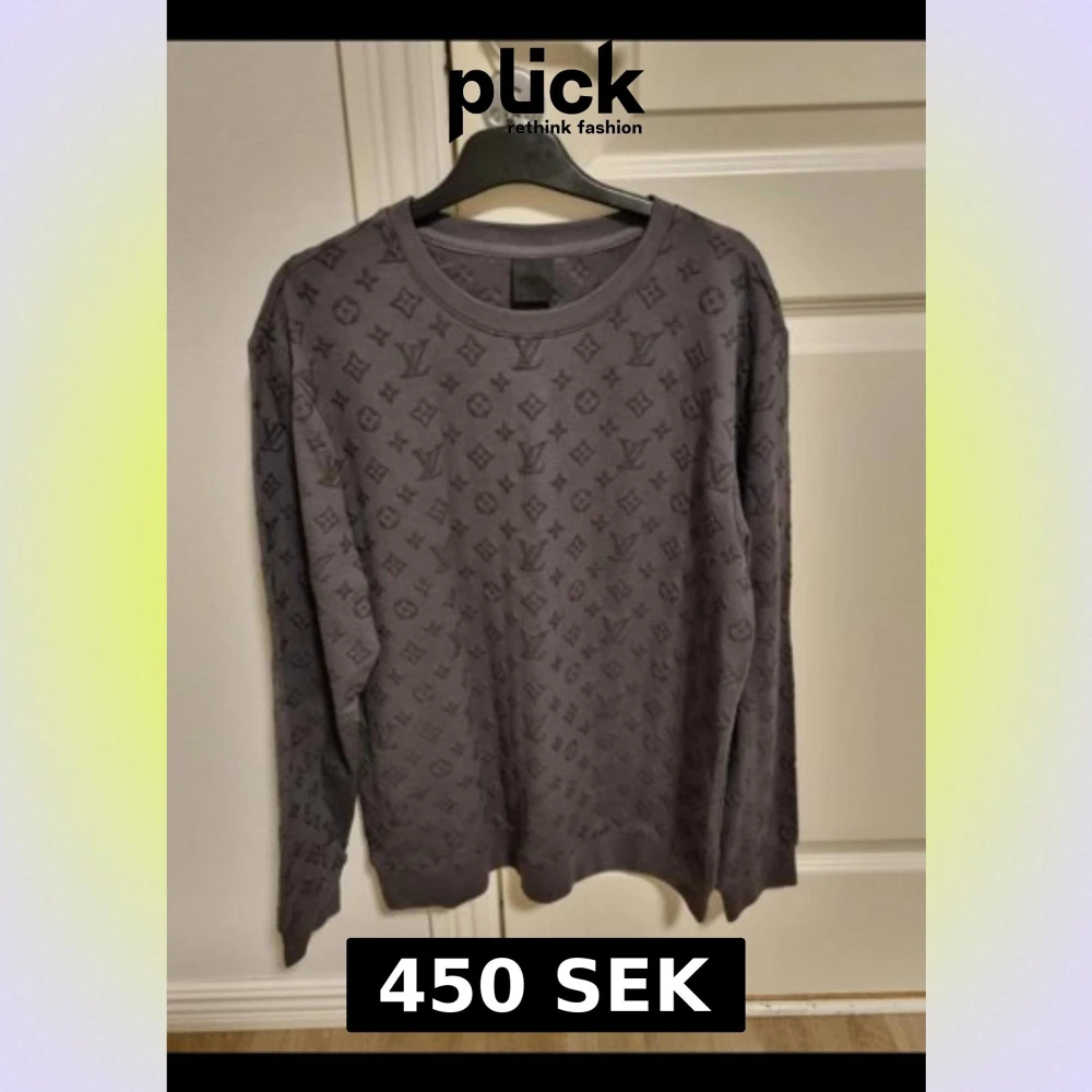 Snygg grå långärmad tröja från Louis Vuitton med det klassiska LV-monogrammet över hela plagget. Rund halsringning och mjukt material som känns skönt mot huden. Perfekt för dig som gillar exklusiva streetwear-vibbar och vill sticka ut med designerplagg.