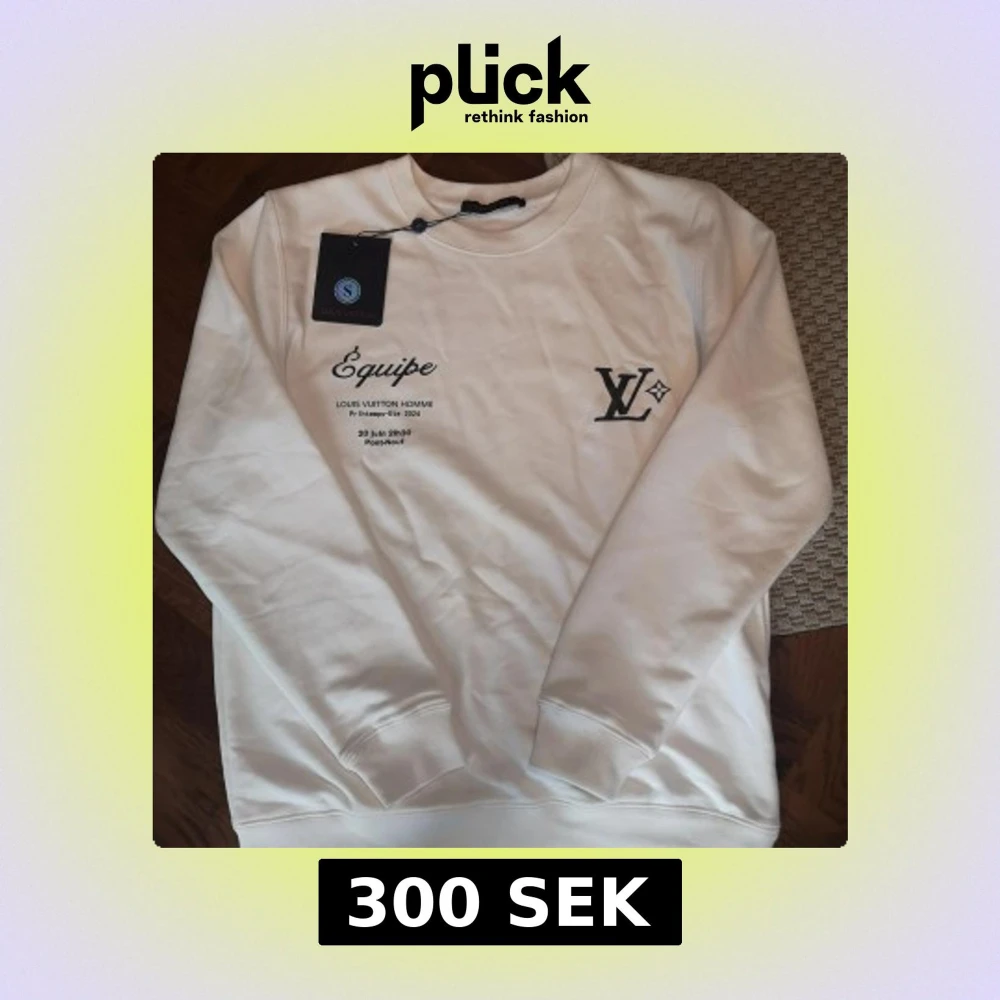 Exklusiv vit crewneck från Louis Vuitton med svart LV-logga och tryck både fram och bak. Säljer då den är för stor för mig helt nytt skick fick den som en överraskning när ja var i London av mina föräldrar , Jag är ungefär 185 o den passar nästan mig så jag skulle säga att den kan passa L också
