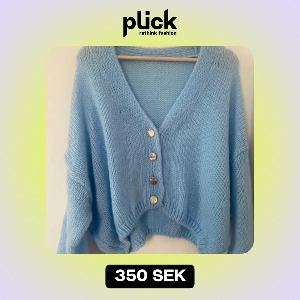 Helt ny och oanvänd, ljusblå stickad kofta. Storlek S/M, lätt oversized i modellen. Fick i present men passa ej.