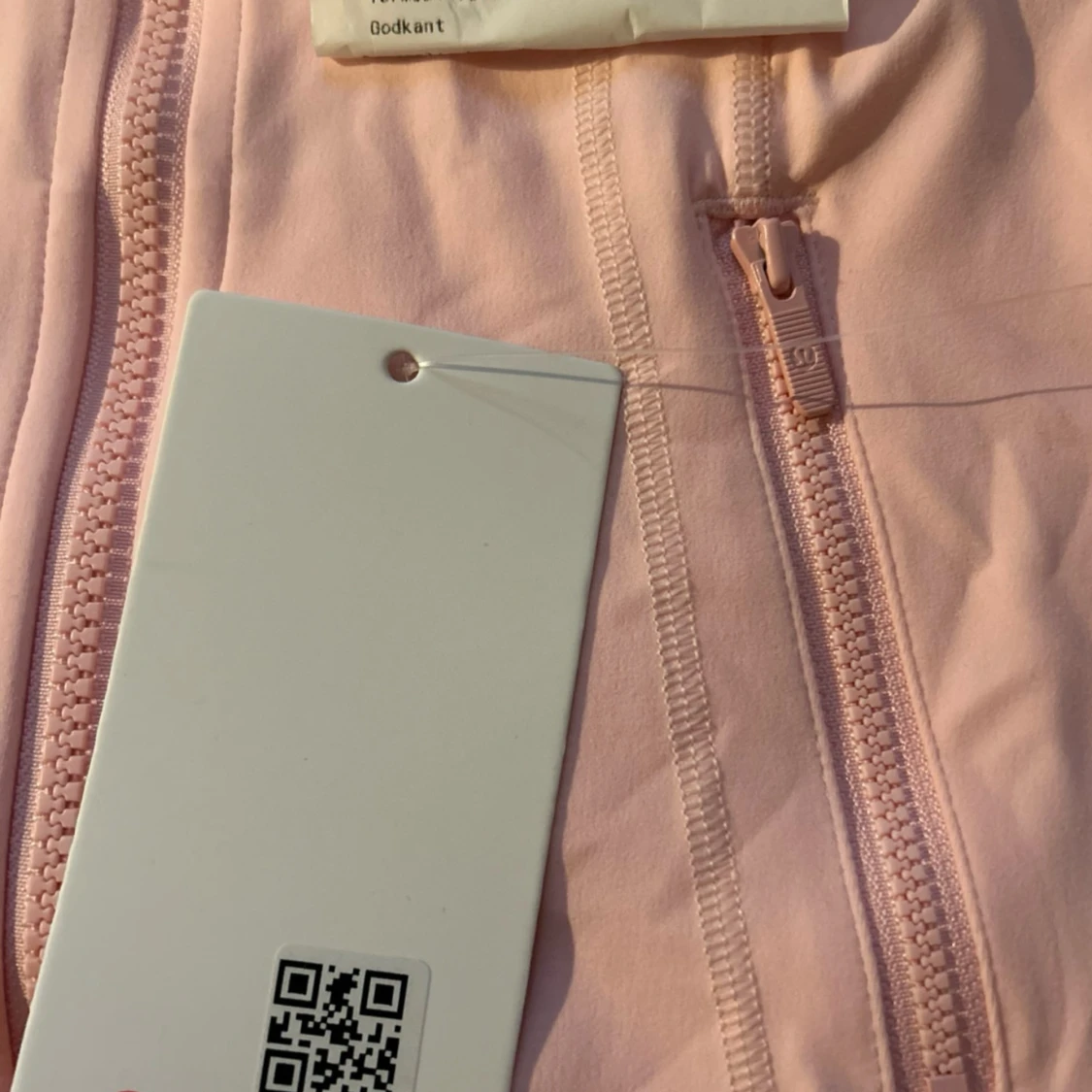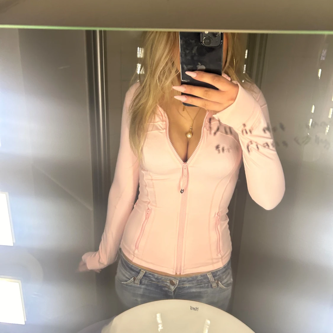 HELT NY! Supersnygg Strawberry Milkshake Define Jacket från Lululemon med dragkedja framtill och två fickor med zip. Slimmad passform och långa ärmar. Materialet är mjukt och stretchigt. Köptes som present fast kom aldrig till användning, den är helt ny och kvittot finns och medkommer! 💕