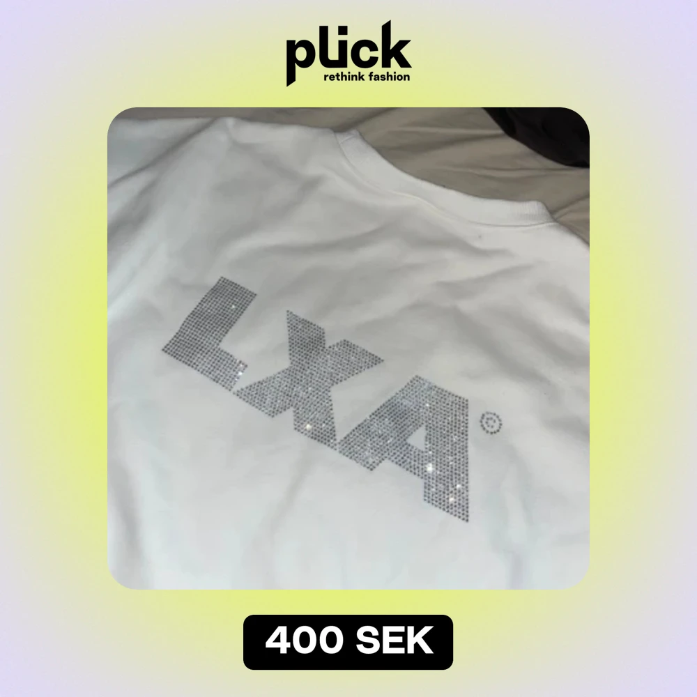 LXA rhinestone sweatshirt i storlek xs (oversized) så passar även S & kanske M. Aldrig använd, endast provad! (Trycket är på ryggen/baksidan av tröjan)