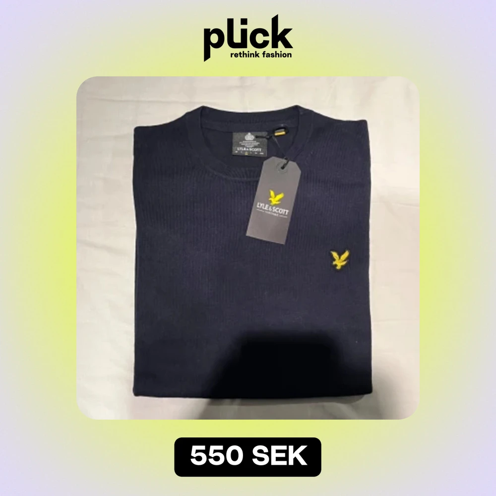Oanvänd stickad tröja av lyle and scott i marinblå färg. Tveka inte på att skriva om du undrar över något😁