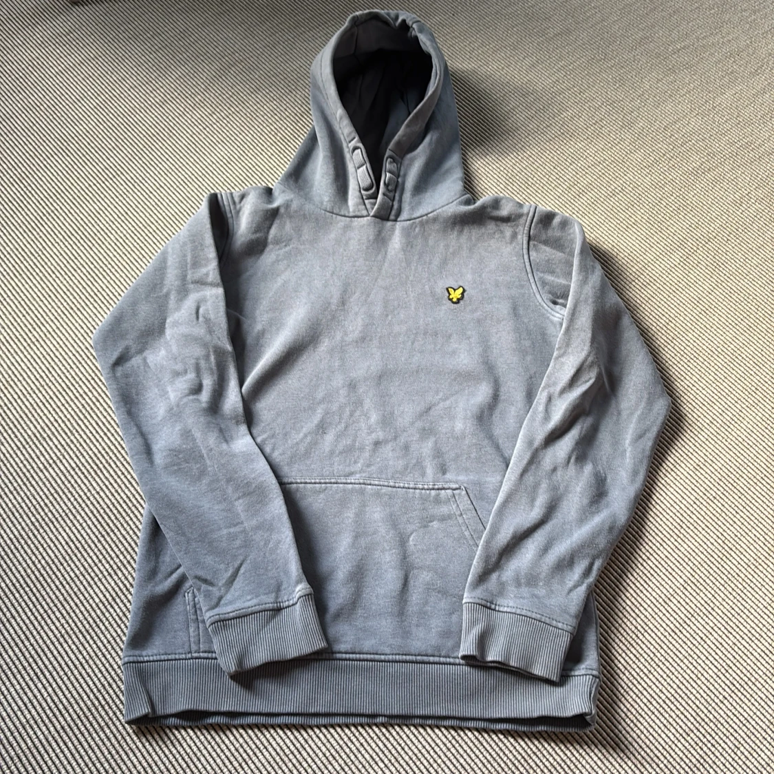Grå hoodie från Lyle & Scott Junior med klassisk gul logga på bröstet. Tröjan har huva, känguruficka och ribbade muddar vid ärmslut och nederkant. Perfekt för en chill och avslappnad stil.