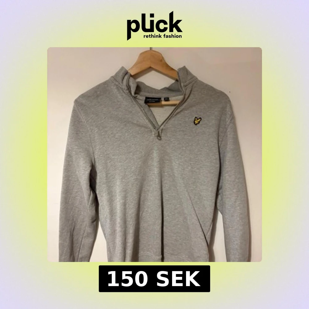 Grå långärmad tröja från Lyle & Scott med gul logga på bröstet. Tröjan har en half zip-dragkedja vid halsen. Perfekt för en chill och stilren look. Den har används. Men har inte direkt många synliga tecken på användning.