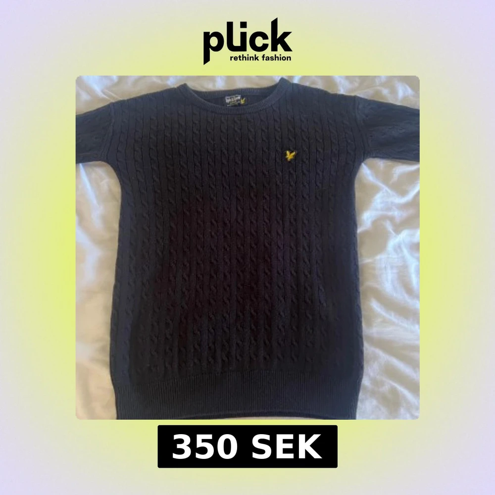 Snygg mörkblå stickad tröja från Lyle & Scott med kabelstickat mönster och deras ikoniska gula logga på bröstet. Perfekt för kyligare dagar med sin klassiska design och bekväma passform.