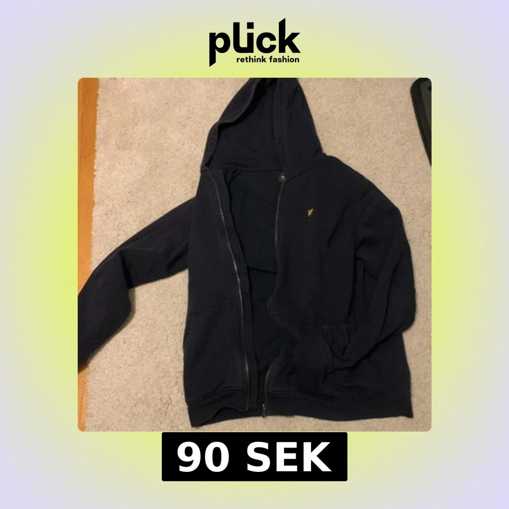 Säljer en stilren mörkblå hoodie från Lyle & Scott Junior. Den har en dragkedja framtill och en liten gul logga på bröstet. Perfekt för en avslappnad look.