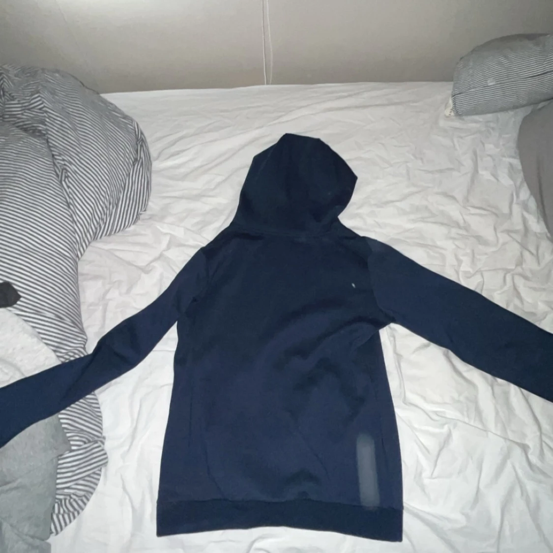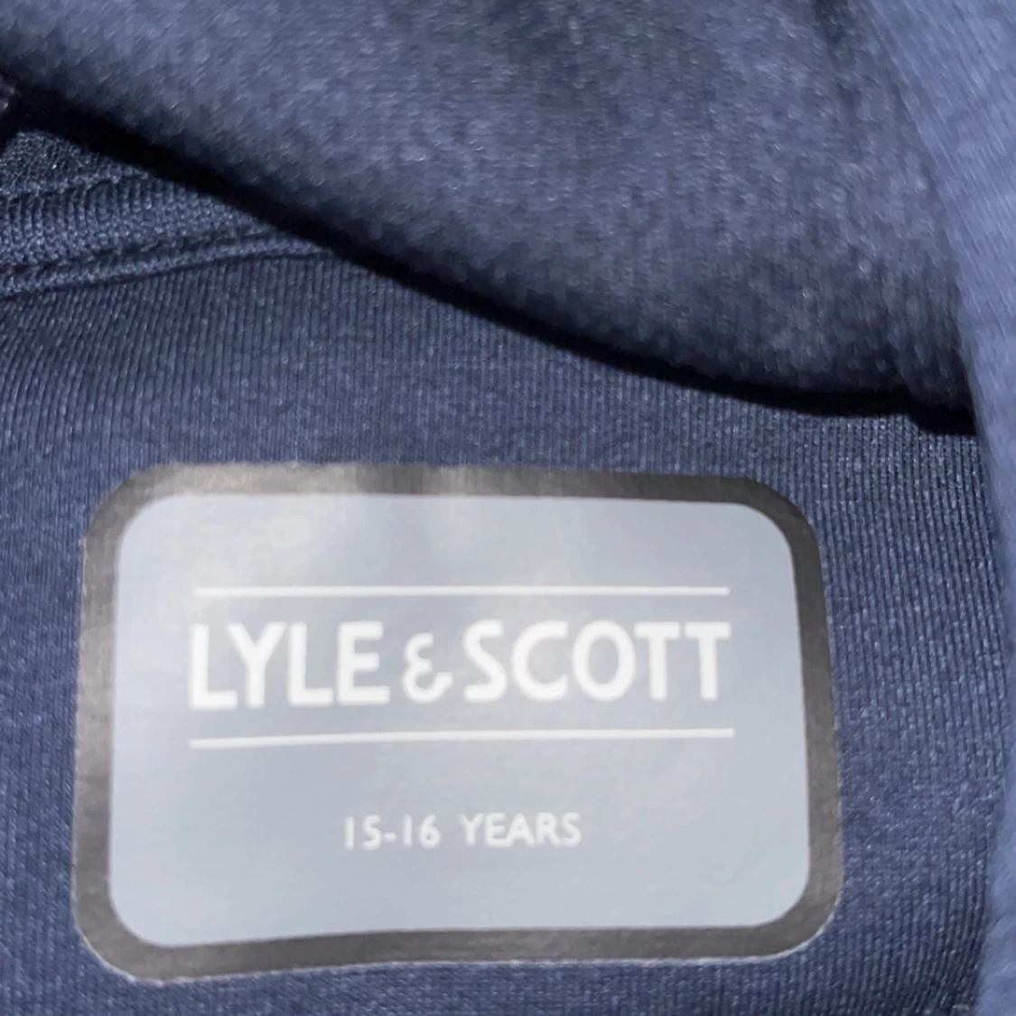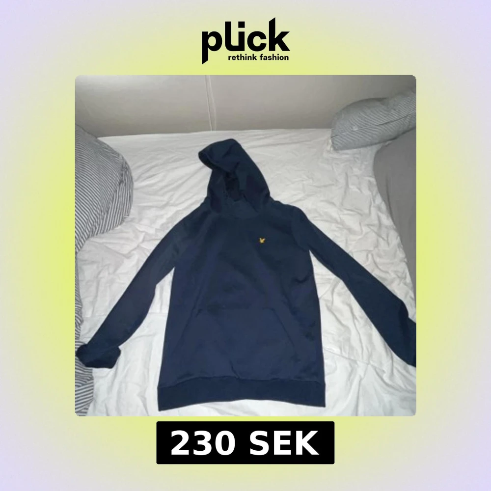 Mörkblå hoodie från Lyle & Scott med klassisk gul logga på bröstet. Tröjan har huva, känguruficka och långa ärmar. Perfekt för dig som gillar stilren och enkel design. Materialet är mjukt och skönt, troligtvis bomull eller bomullsblandning.