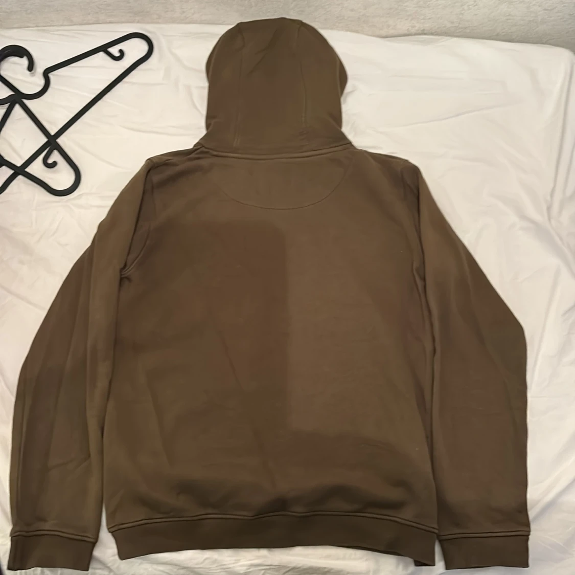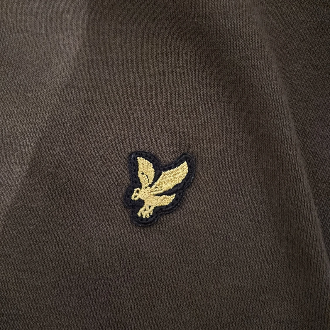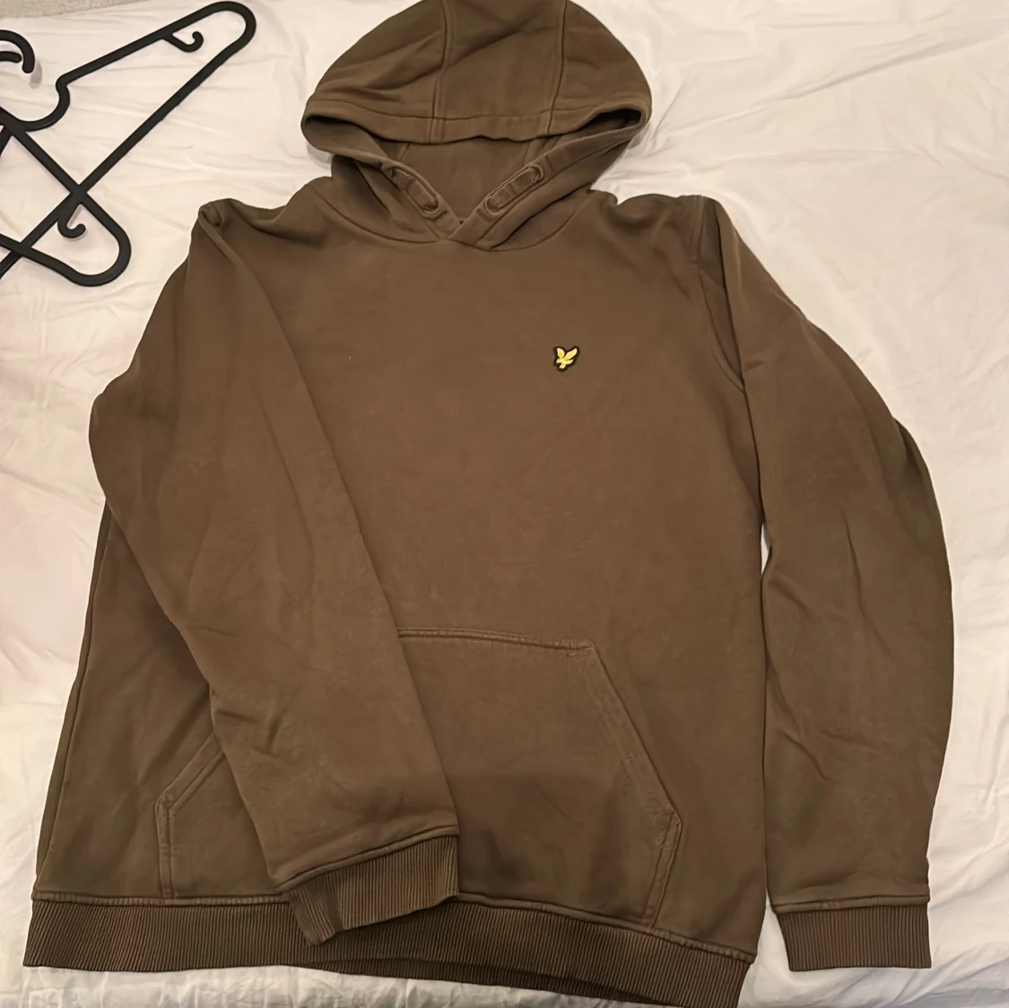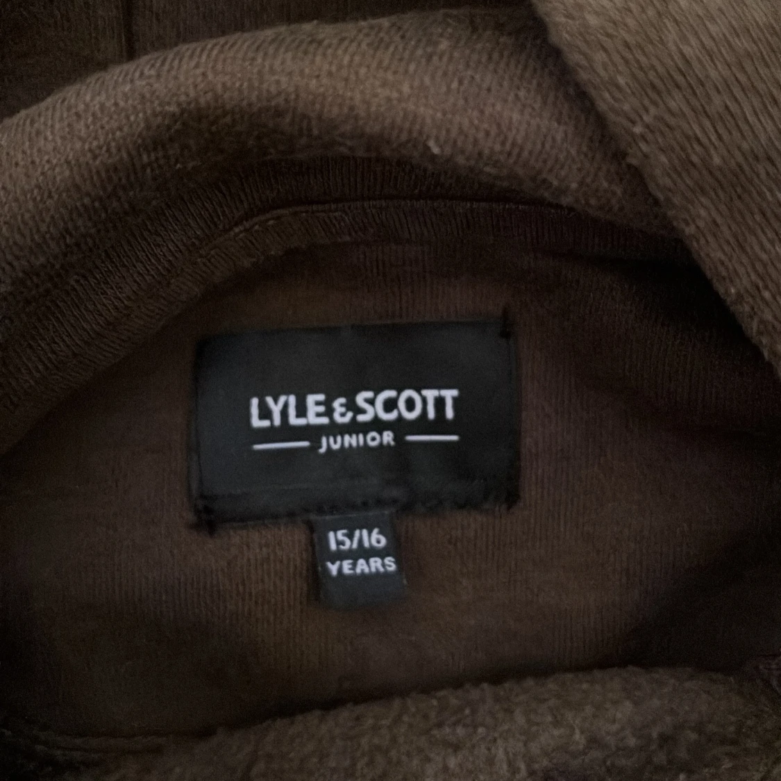 Säljer en brun hoodie från Lyle & Scott Junior med klassisk huva och magficka. Tröjan har ett broderat gult logomärke på bröstet och ribbade muddar vid ärmslut och nederkant. Perfekt för en avslappnad stil.