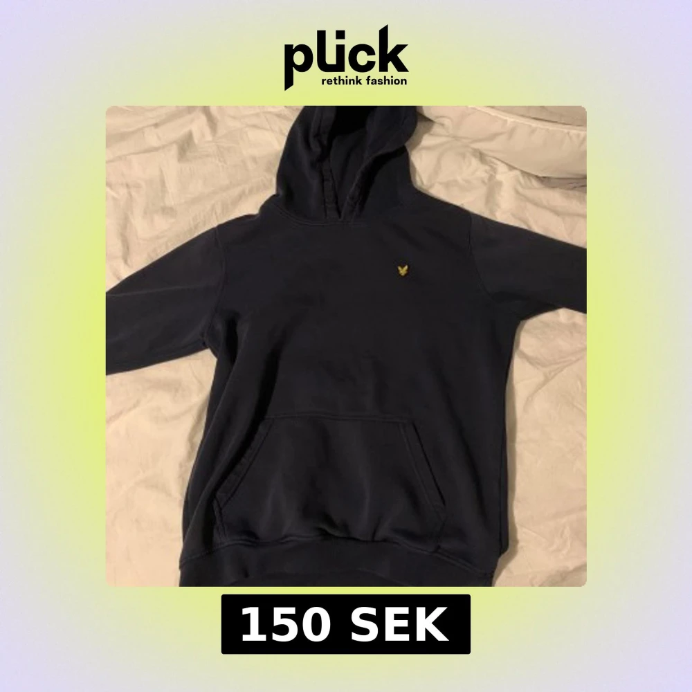 Säljer en stilren mörkblå hoodie från Lyle & Scott med en liten gul logga på bröstet. Tröjan har en klassisk känguruficka och en bekväm huva. Perfekt för en avslappnad stil.