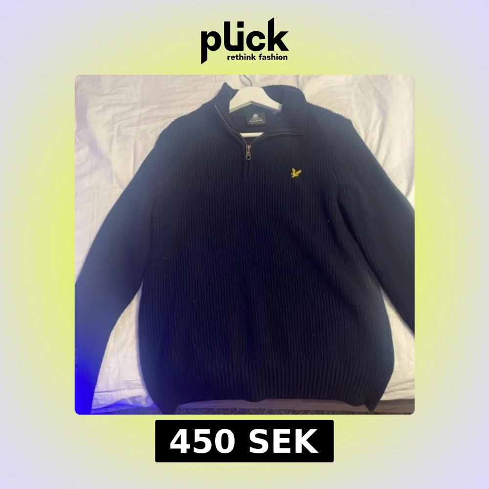 Svart stickad tröja från Lyle & Scott med ribbad struktur och gul broderad logga på bröstet. Tröjan har half zip i halsen och långärmade ärmar. Perfekt för dig som gillar klassisk stil med en modern touch.