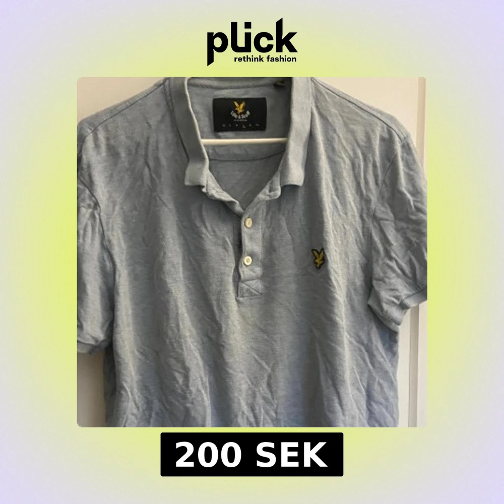Säljer en ljusblå pikétröja från Lyle & Scott med klassisk krage och två knappar framtill. Tröjan har det ikoniska gula örnloggan broderad på bröstet och är tillverkad i mjuk bomull. Perfekt för en clean och avslappnad stil. L men funkar som M också