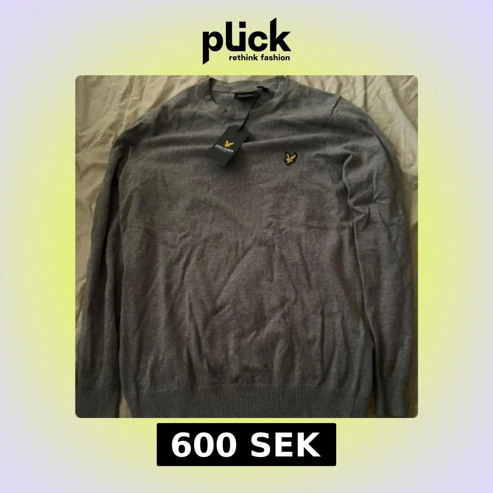 Säljer en klassisk grå tröja från Lyle & Scott med rund halsringning och deras ikoniska gula logga broderad på bröstet. Tröjan har långa ärmar och ribbade muddar vid ärmslut och nederkant. Perfekt för en stilren look.