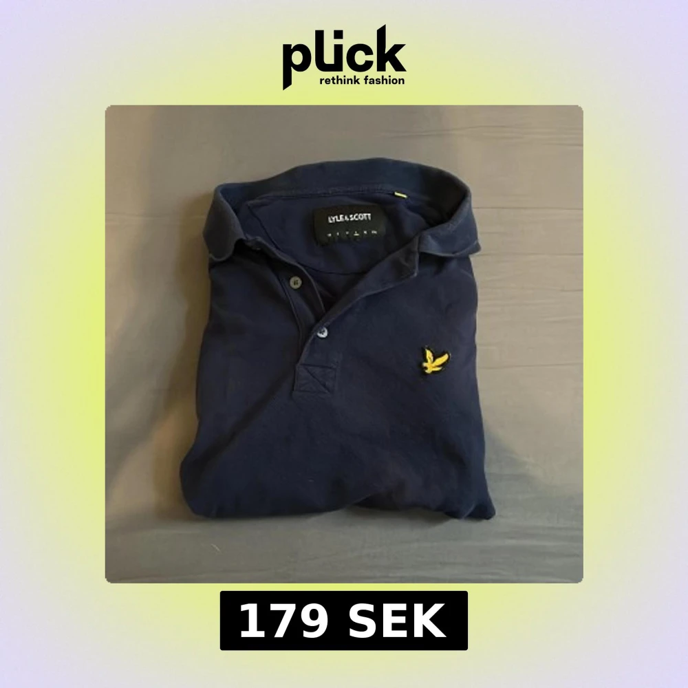 Snygg marinblå pikétröja från Lyle & Scott med klassisk krage och två knappar. Tröjan har det ikoniska gula fågel-loggan broderad på bröstet. Perfekt för en clean och stilren look. Tillverkad i mjuk bomull och har korta ärmar. Hör av er vid minsta lilla fråga.