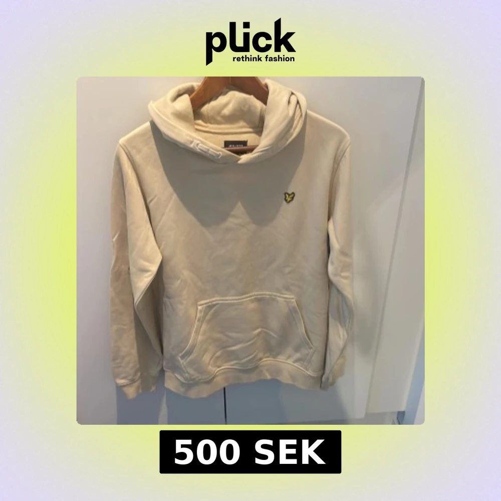 Säljer en beige hoodie från Lyle & Scott med klassisk gul fågel-logga på bröstet. Tröjan har huva, magficka och långa ärmar. Materialet är mjuk bomull blandat med polyester, perfekt för chill dagar. Enkel och stilren design som funkar till det mesta.