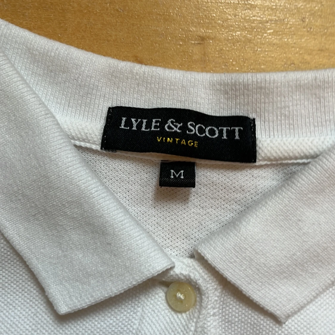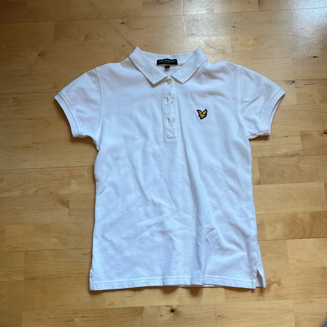 Klassisk vit pikétröja från Lyle & Scott med korta ärmar och gul broderad logga på bröstet. Tröjan har krage, knäppning med tre knappar och är tillverkad i mjuk bomull. Perfekt för en clean och sportig stil.