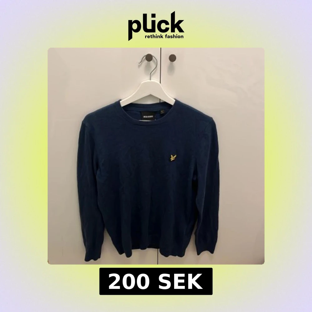 Snygg marinblå tröja från Lyle & Scott med rund hals. Tröjan är långärmad och tillverkad i bomull. Använd ett femtal gånger men i nyskick. Skriv om du undrar nått mer.