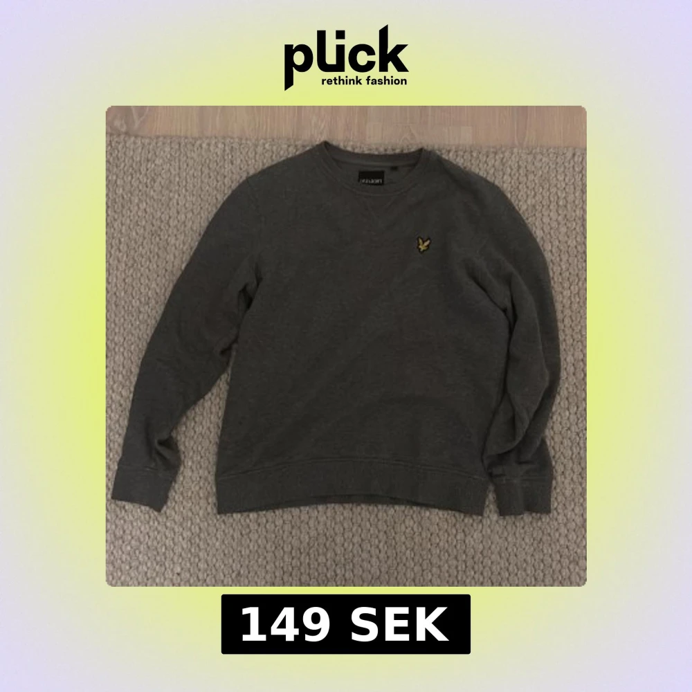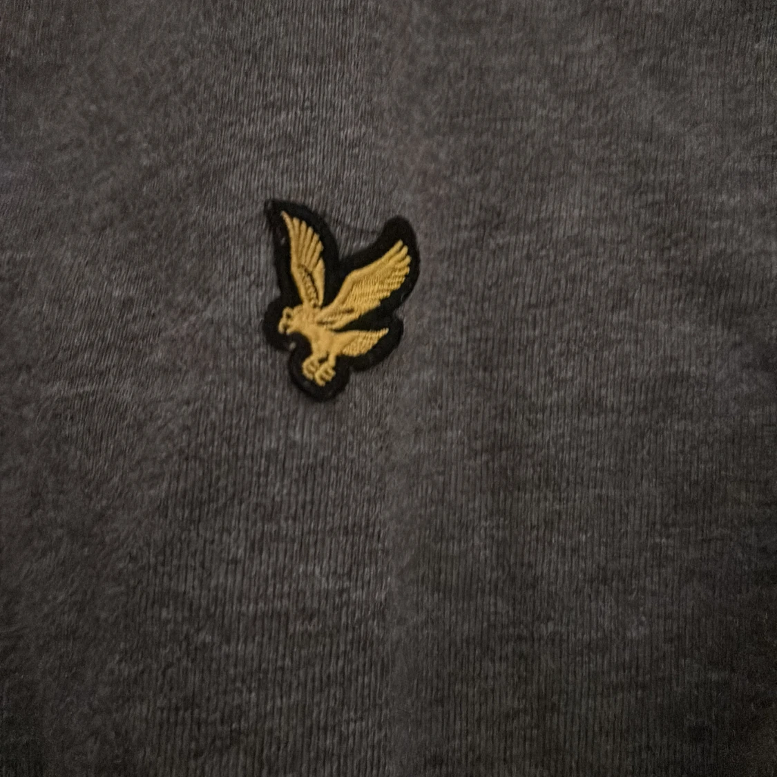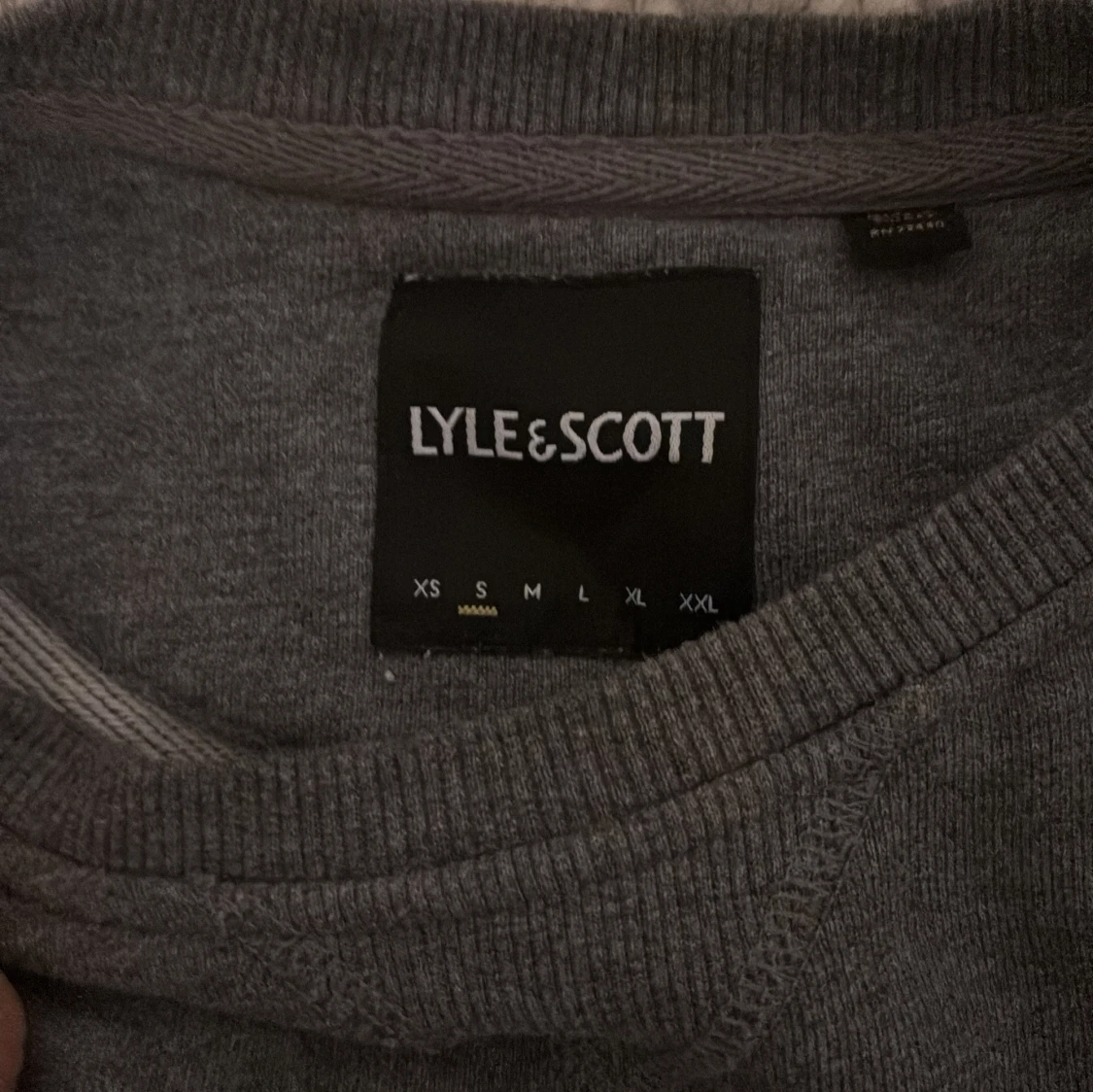 Säljer en stilren grå tröja från Lyle & Scott med deras ikoniska gula logga på bröstet. Tröjan har långa ärmar och en klassisk rund halsringning. Perfekt för en avslappnad look.