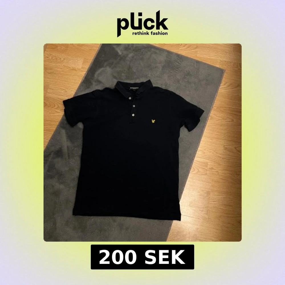 Klassisk svart pikétröja från Lyle & Scott med gul broderad logga på bröstet. Liten i storleken passar S bäst