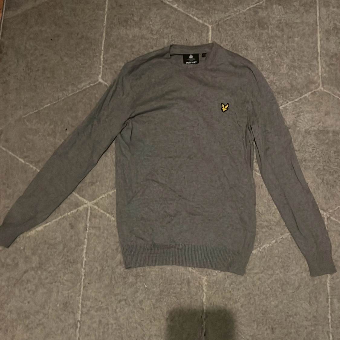 Snygg grå stickad tröja från Lyle & Scott med klassisk gul broderad fågel på bröstet. Tröjan har rund hals, ribbade muddar och långärmad passform. Perfekt för dig som gillar stilrena och enkla plagg med en ikonisk detalj.