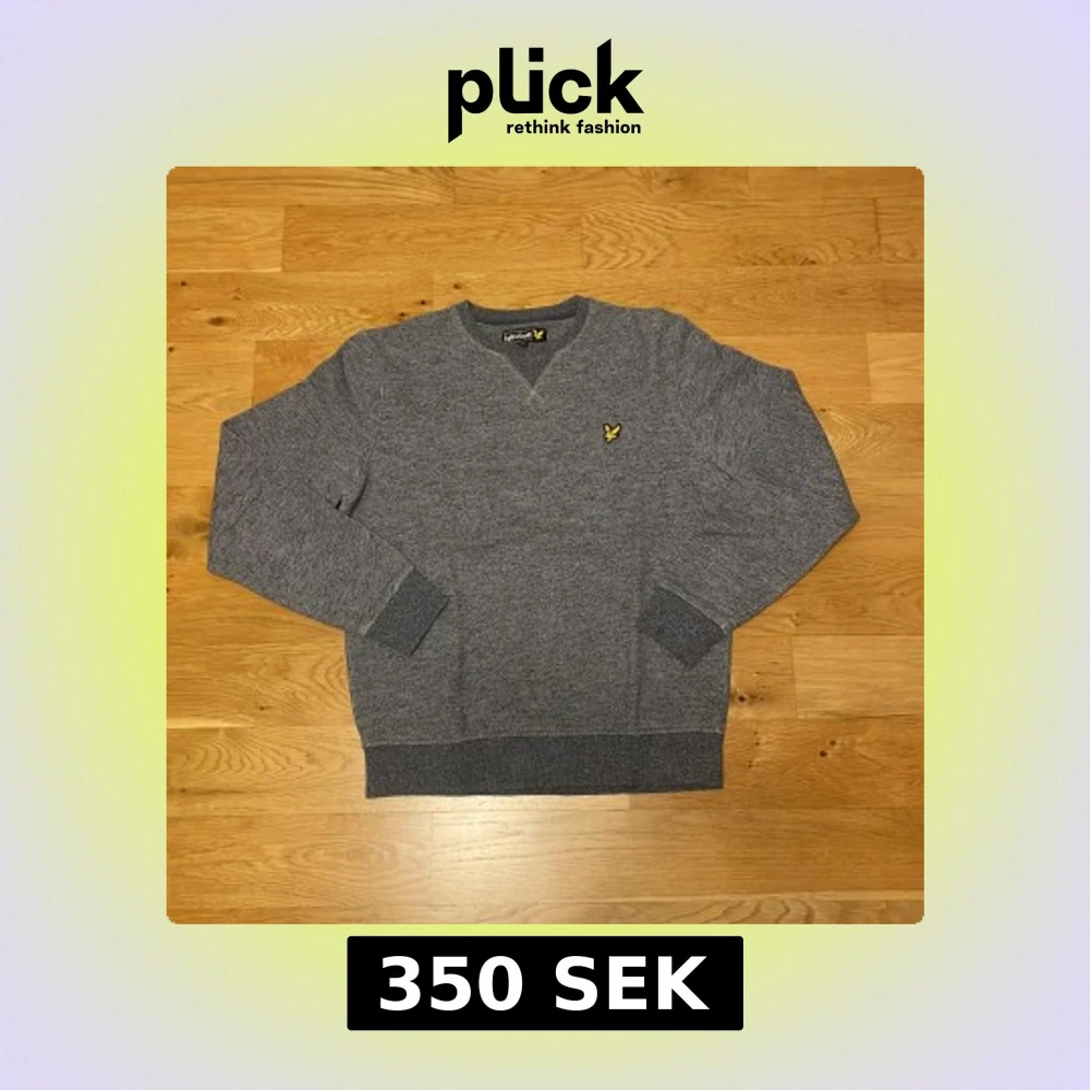 Tjena säljer en gråmelerad sweatshirt från Lyle & Scott med klassisk rund hals och broderad gul logga på bröstet. Tröjan har ribbade muddar vid ärmslut och nederkant, perfekt för en chill och stilren look.