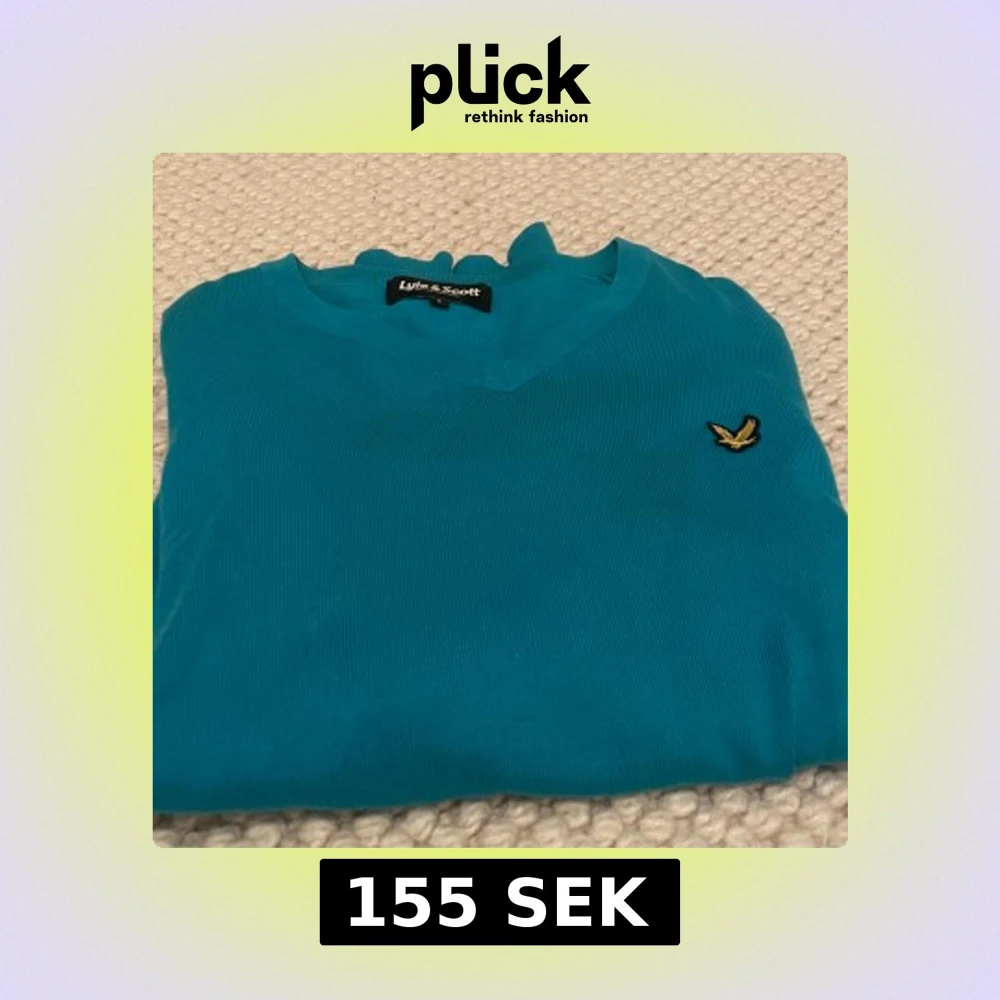 Snygg turkos stickad tröja från Lyle & Scott med v-ringning och klassisk gul logga på bröstet. Tröjan har långa ärmar och är gjord i mjukt material som känns skönt mot huden. Perfekt för dig som gillar stilrena och färgglada plagg.