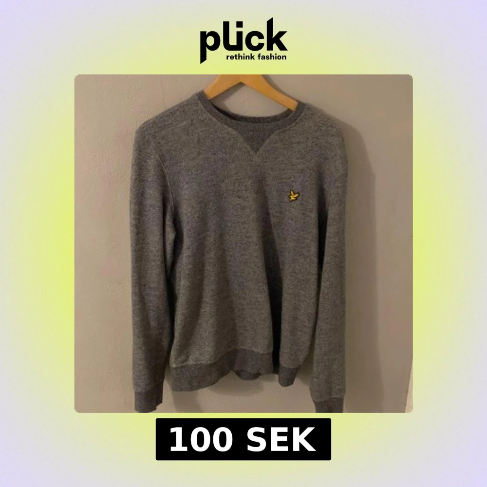 Säljer en stilren grå tröja från Lyle & Scott med deras ikoniska logga på bröstet. Tröjan har långa ärmar och en rund halsringning. Perfekt för en avslappnad look.