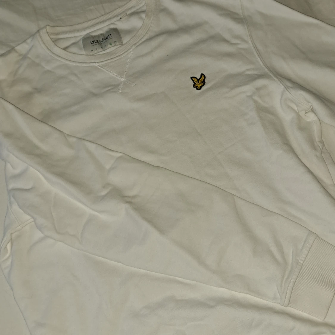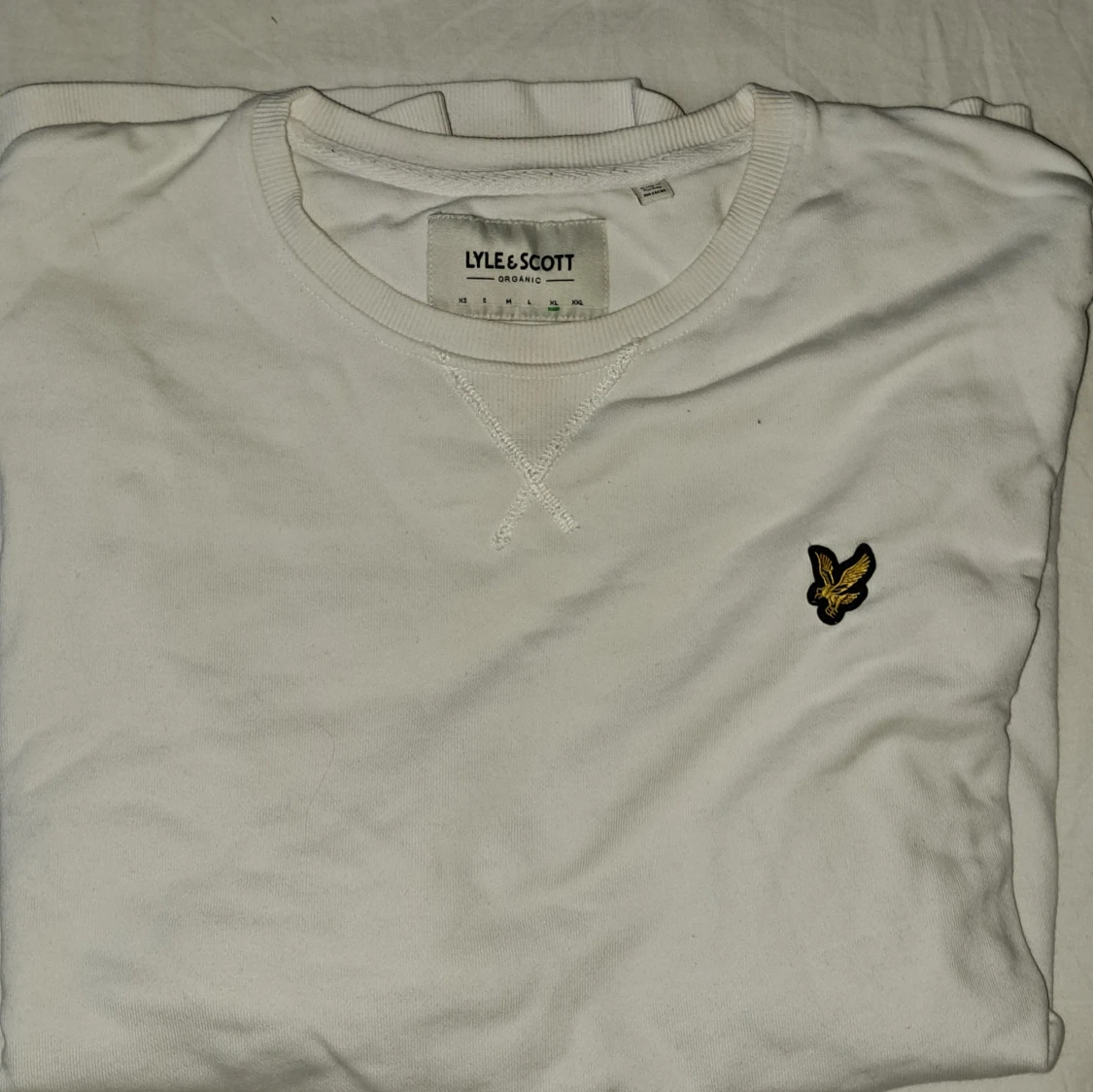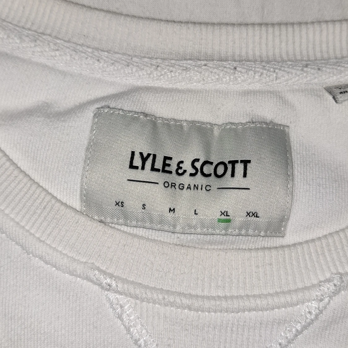 Vit sweatshirt från Lyle & Scott i ekologisk bomull. Klassisk rund halsringning, ribbade muddar och det ikoniska gula örnloggan broderad på bröstet. Perfekt basic med clean look och skön passform.