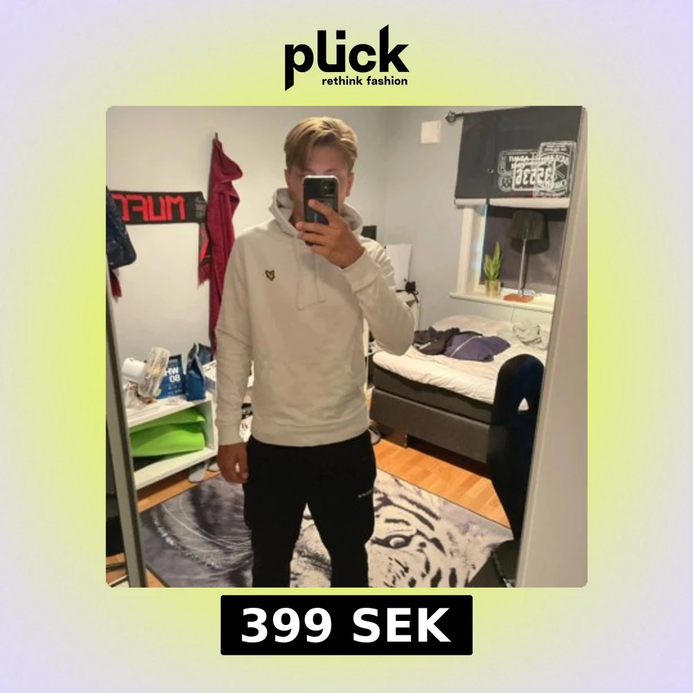 Säljer en stilren vit hoodie från Lyle & Scott med klassisk gul logga på bröstet. Tröjan har huva med snörning och är långärmad. Perfekt för dig som gillar enkel och clean streetstyle.