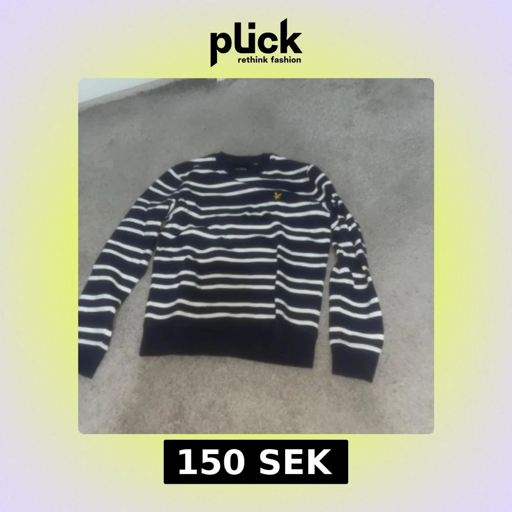 Snygg randig tröja från Lyle & Scott i blått och vit med ett gult broderat emblem på bröstet. Tröjan har långa ärmar och en klassisk passform. Perfekt för en stilren look.