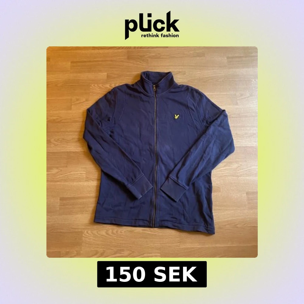 Marinblå zipjacka från Lyle & Scott med gul broderad logga på bröstet. Jackan har hög krage, hel dragkedja och är tillverkad i mjuk bomull. Perfekt för en chill och stilren look. Köptes för 1100kr