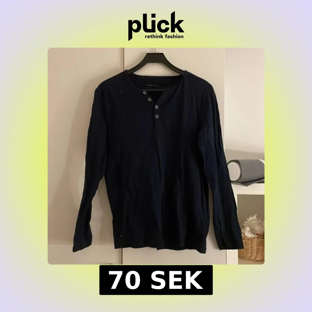 Säljer en stilren mörkblå långärmad tröja från Pier One. Tröjan har en knappdetalj vid halsen som ger en avslappnad look. Perfekt för en casual stil.