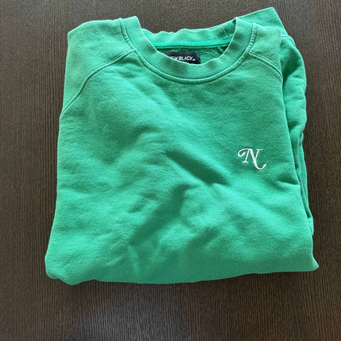 Säljer en snygg grön tröja från New Black med ett stilrent broderat 'N' på bröstet. Färgen är väldigt stilren