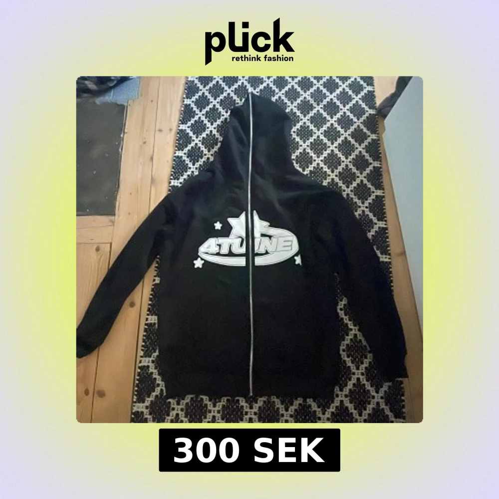 Säljer en svart hoodie med dragkedja från 4Tune. Den har ett stort tryck med stjärnor och text på både fram- och baksidan. Perfekt för en avslappnad stil. Hör av dig vid intresse! Pris kan diskuteras