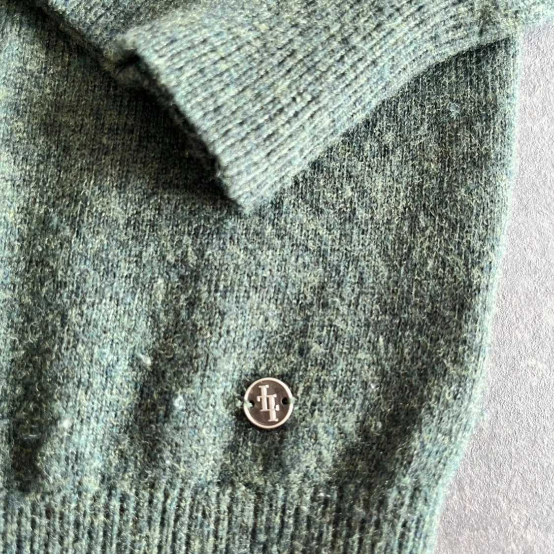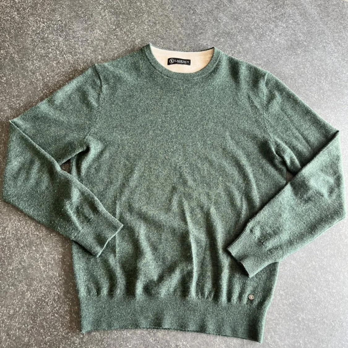 Mysig grön stickad tröja från Lagency med rund halsringning och ribbade muddar. Tröjan har en diskret metallogo vid nederkanten och är perfekt för lager-på-lager. Passformen är normal och materialet känns mjukt och värmande. Storlek M, nypris 1200kr. (Enda defekt är att lilla metall loggan behövts sättas fast igen med en liten tråd).