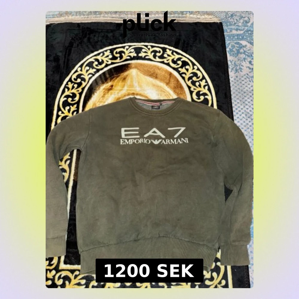 Snygg mörkgrön sweatshirt från EA7 Emporio Armani med tryckt logga på bröstet. Tröjan har rund halsringning, långa ärmar och ribbade muddar vid ärmslut och nederkant. Perfekt för en avslappnad och trendig stil. Pris går att diskutera