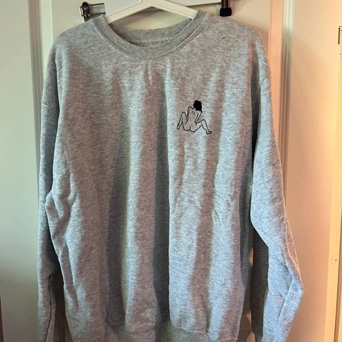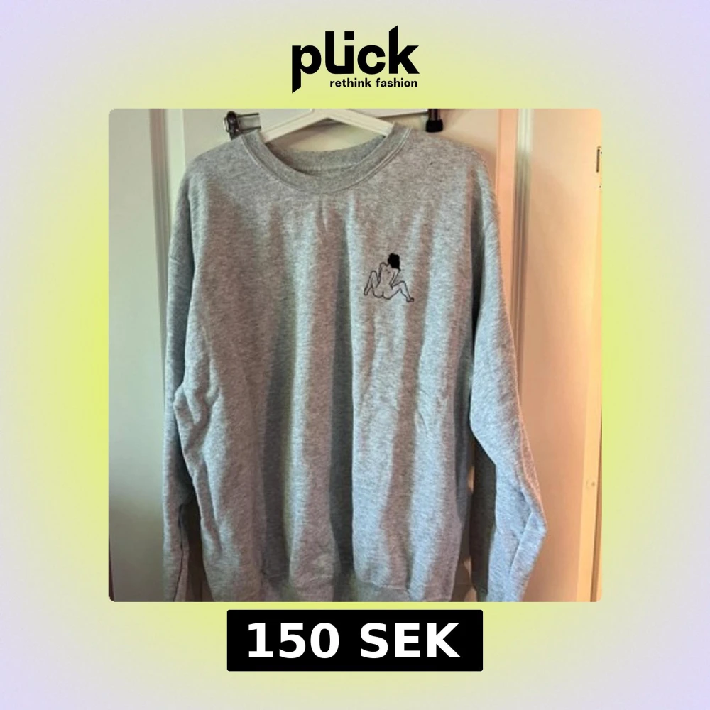 En grå sweatshirt med rund hals och lång ärm. På bröstet finns en liten broderad figur i svart. Tröjan är i mjuk bomullsblandning och har ribbade muddar vid ärmslut och nederkant. Perfekt för en chill och avslappnad stil.