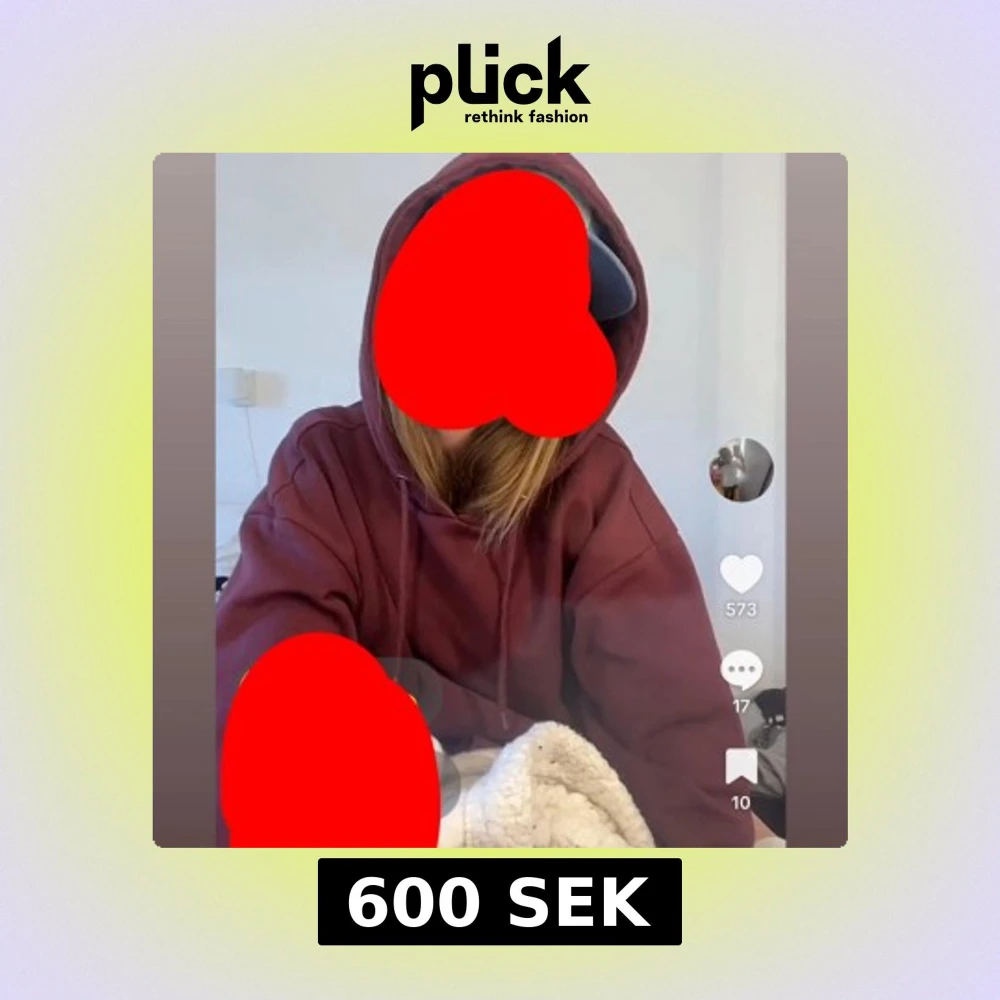 Säljer en mörkröd oversized hoodie med huva och snörning. Tröjan har en avslappnad passform och långa ärmar, perfekt för chill dagar. Tillverkad i mjukt material som känns skönt mot huden.