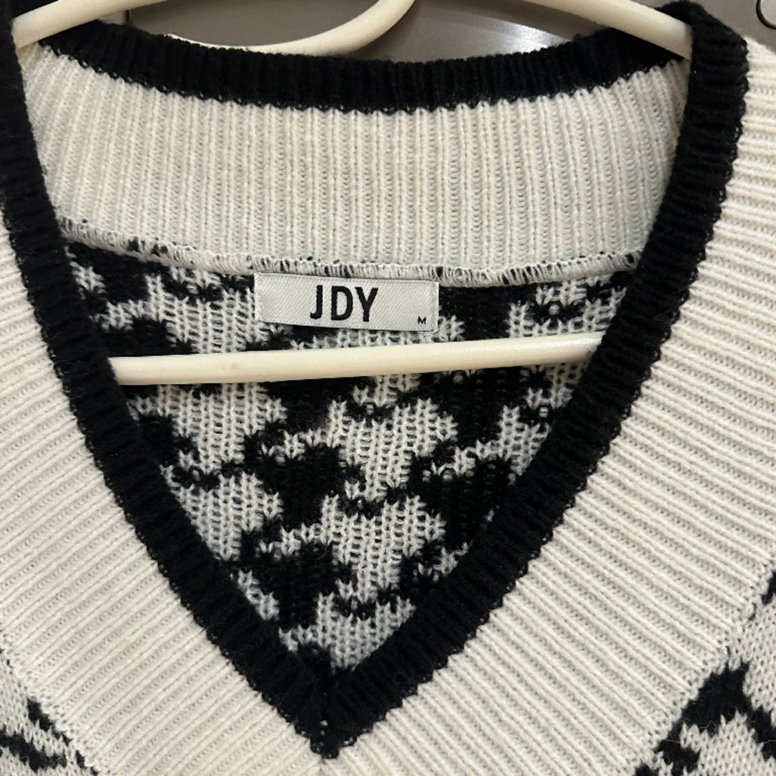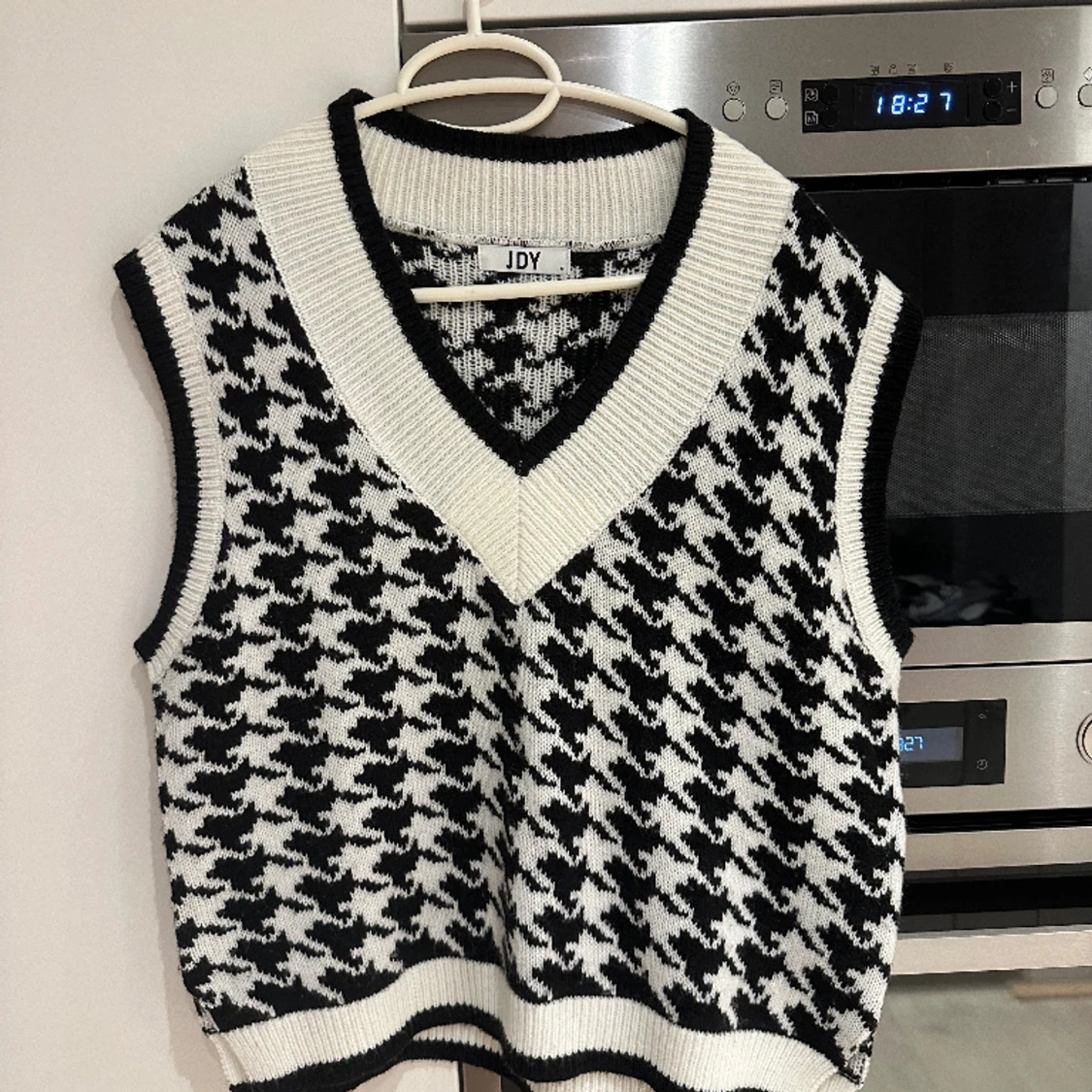 Hundtandsmönstrad väst, storlek M. Liten slits på sidorna. Endast använd en gång.
