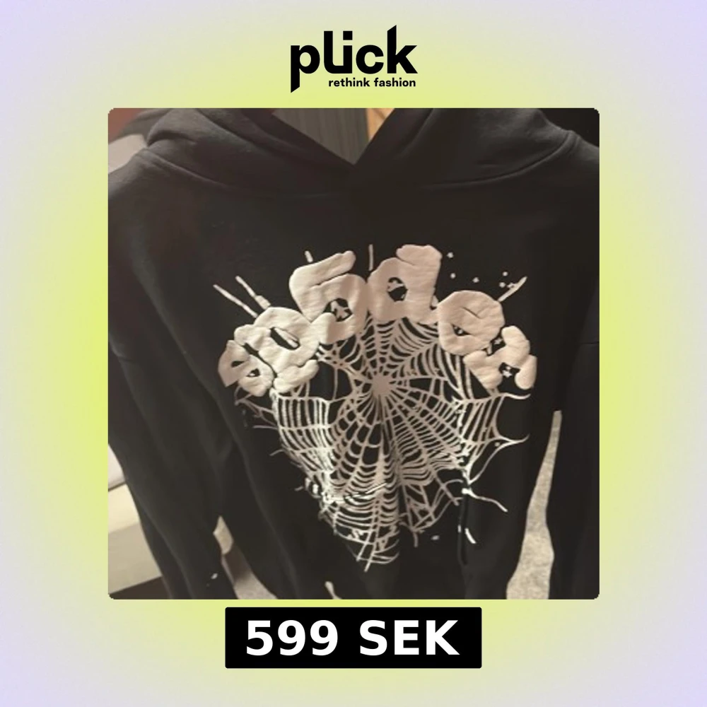 Svart hoodie med stor vit spindelnätsgrafik och coolt tryck framtill. Tröjan har huva och långa ärmar, perfekt för dig som gillar streetstyle och vill sticka ut med ett unikt motiv.