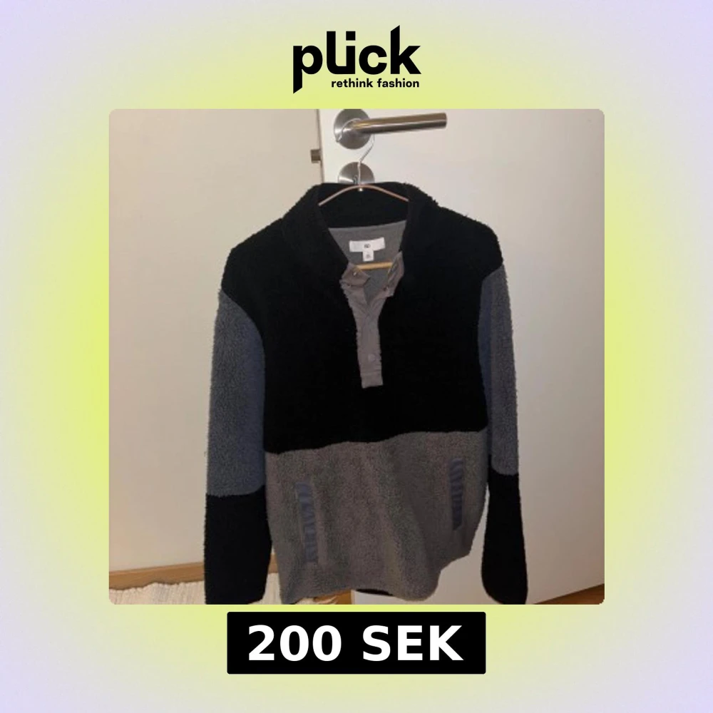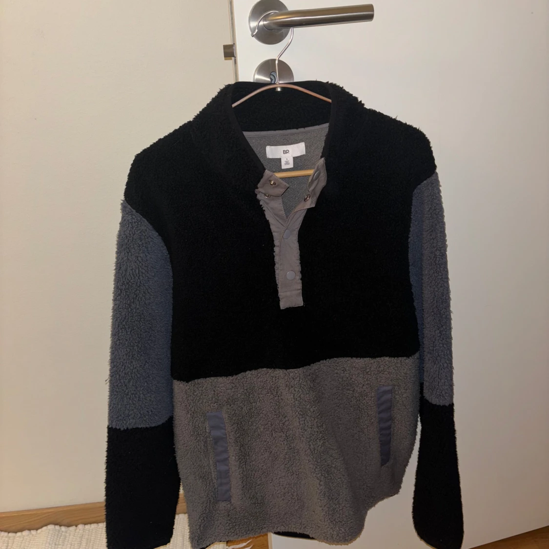 Mysig fleece från BP i svart och grått. Tröjan har en halv dragkedja och hög krage, perfekt för kyliga dagar. Den är långärmad och har en avslappnad passform.