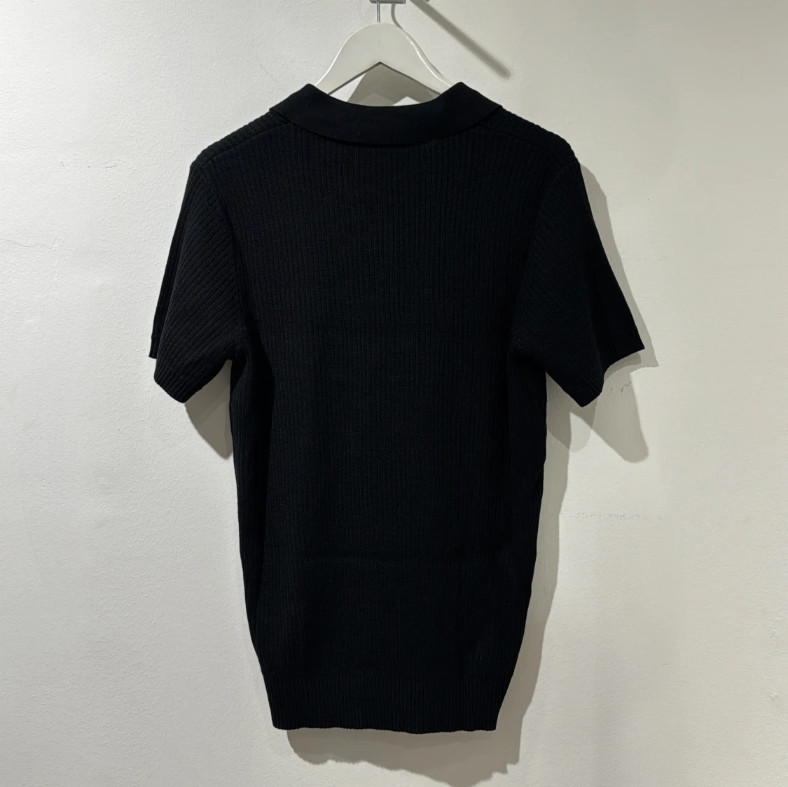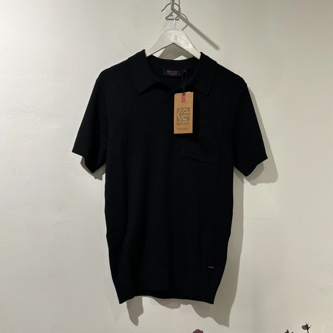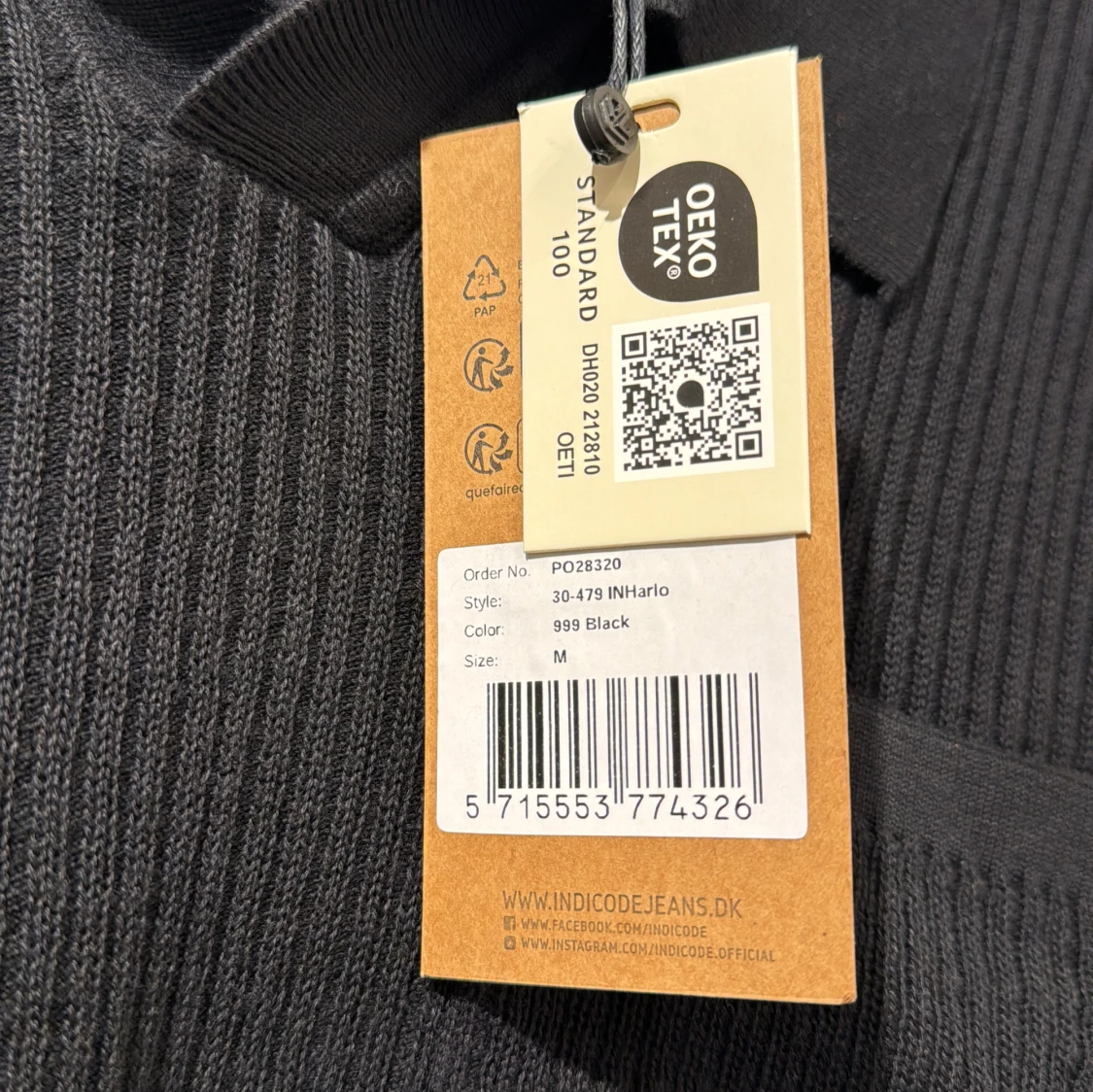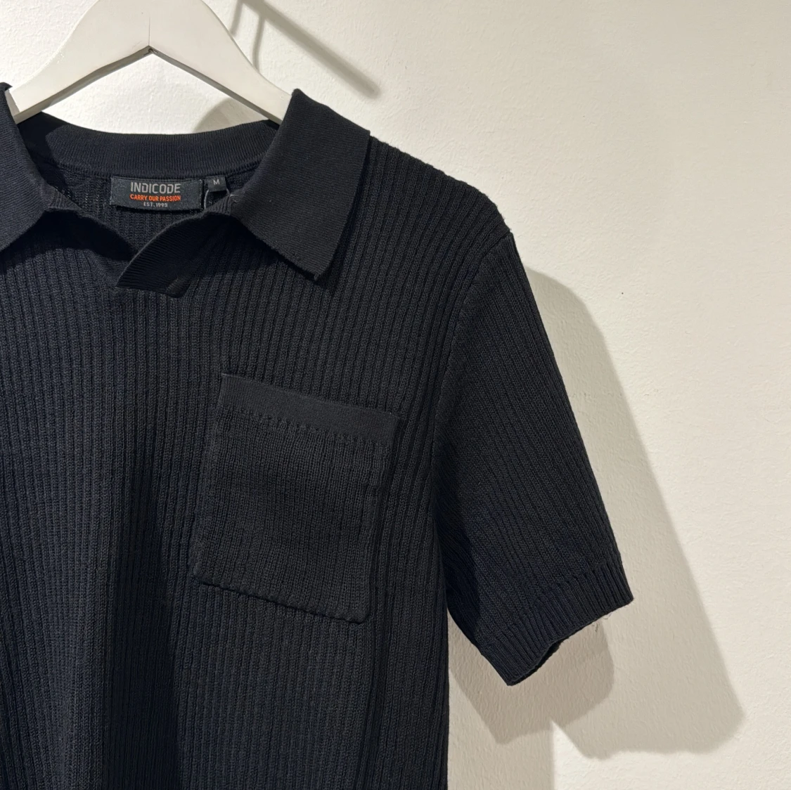 Svart ribbad pikétröja från Indicode med klassisk krage och kort ärm. Tröjan har en bröstficka och är tillverkad i ett stickat material som ger en snygg struktur. Perfekt för dig som gillar stilrena och enkla plagg med en twist. 100% bomull
