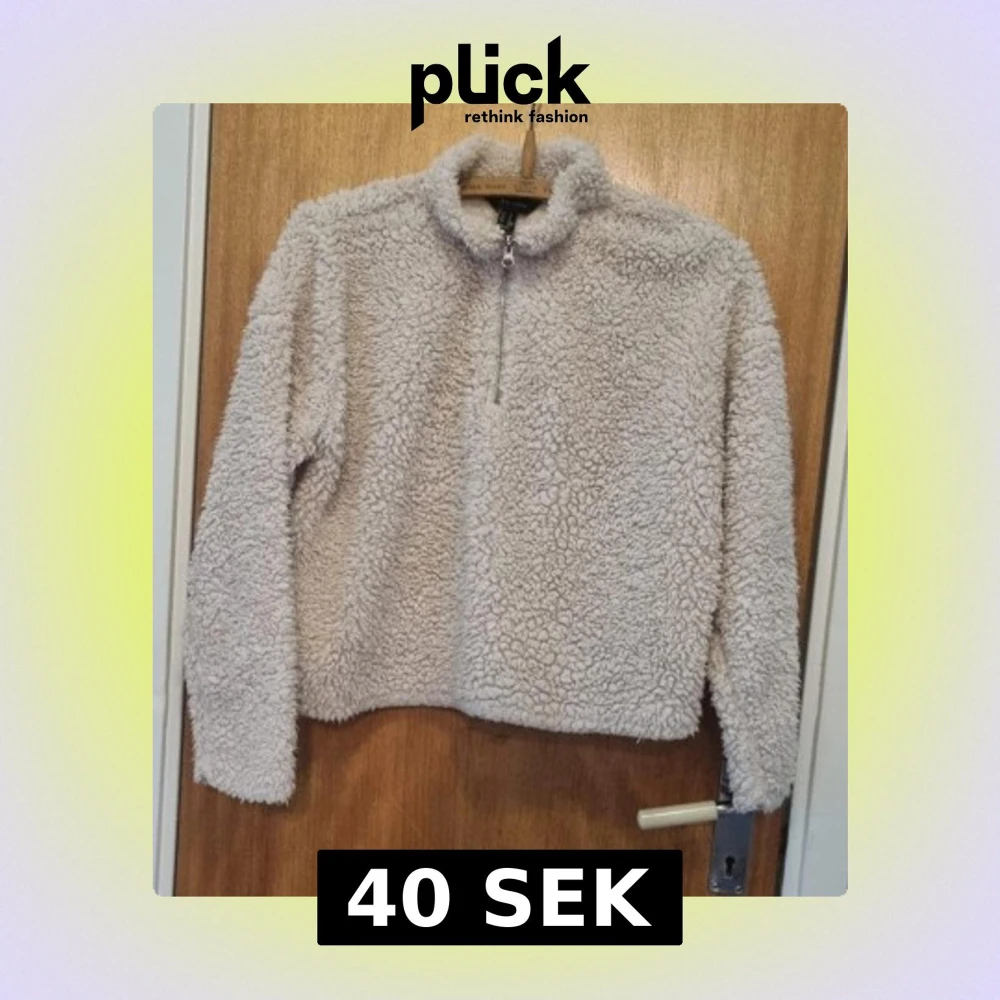 Supermjuk och fluffig beige fleece-tröja från H&M med halv dragkedja framtill. Perfekt för kyliga dagar, har långärmad design och hög krage som håller dig varm. Enkel att matcha med jeans eller mjukisbyxor.