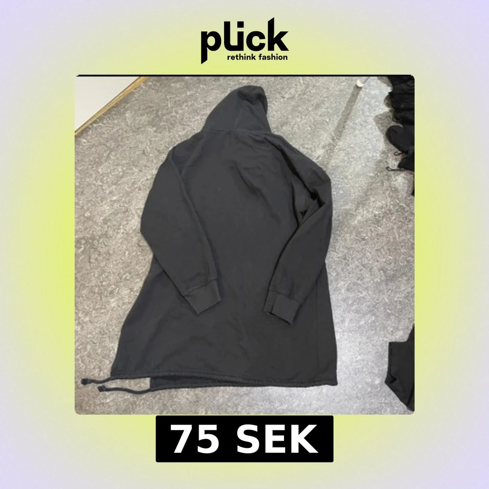 Svart hoodie med lång passform och huva. Tröjan har långa ärmar och snörning längst ner i kanten för att justera stilen. Tillverkad i mjukt bomullsmaterial, perfekt för chill dagar. Enkel och clean design utan tryck eller mönster.