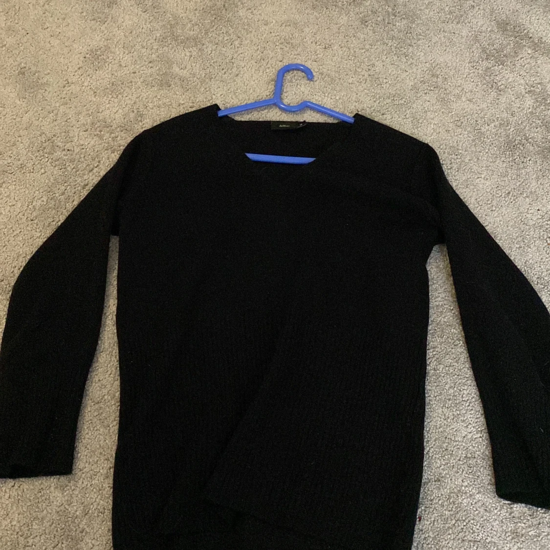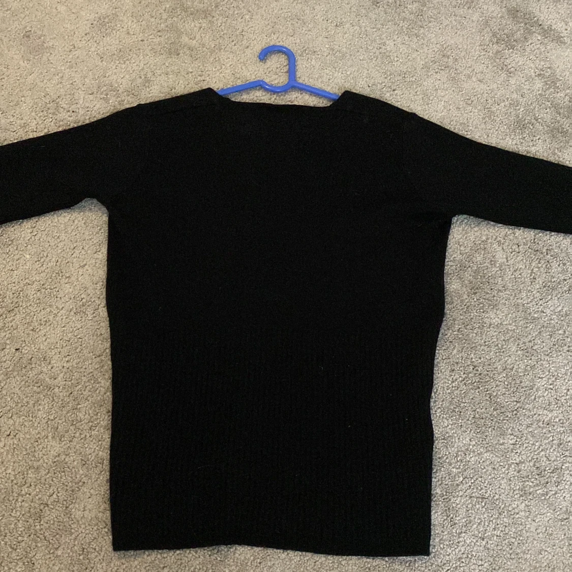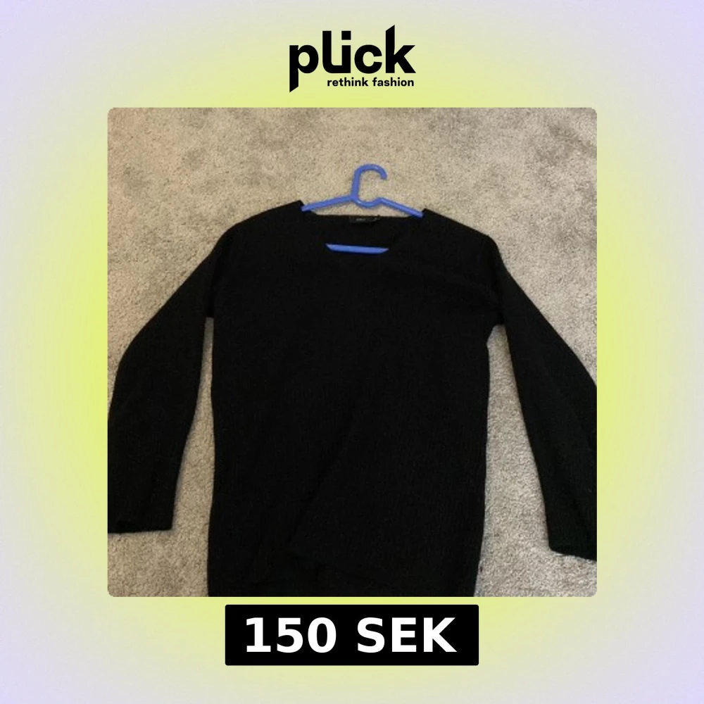 Säljer en stilren svart tröja med V-ringning. Perfekt för både vardag och mer uppklädda tillfällen. Tröjan har långa ärmar och är tillverkad i ett mjukt material som ger en bekväm passform.